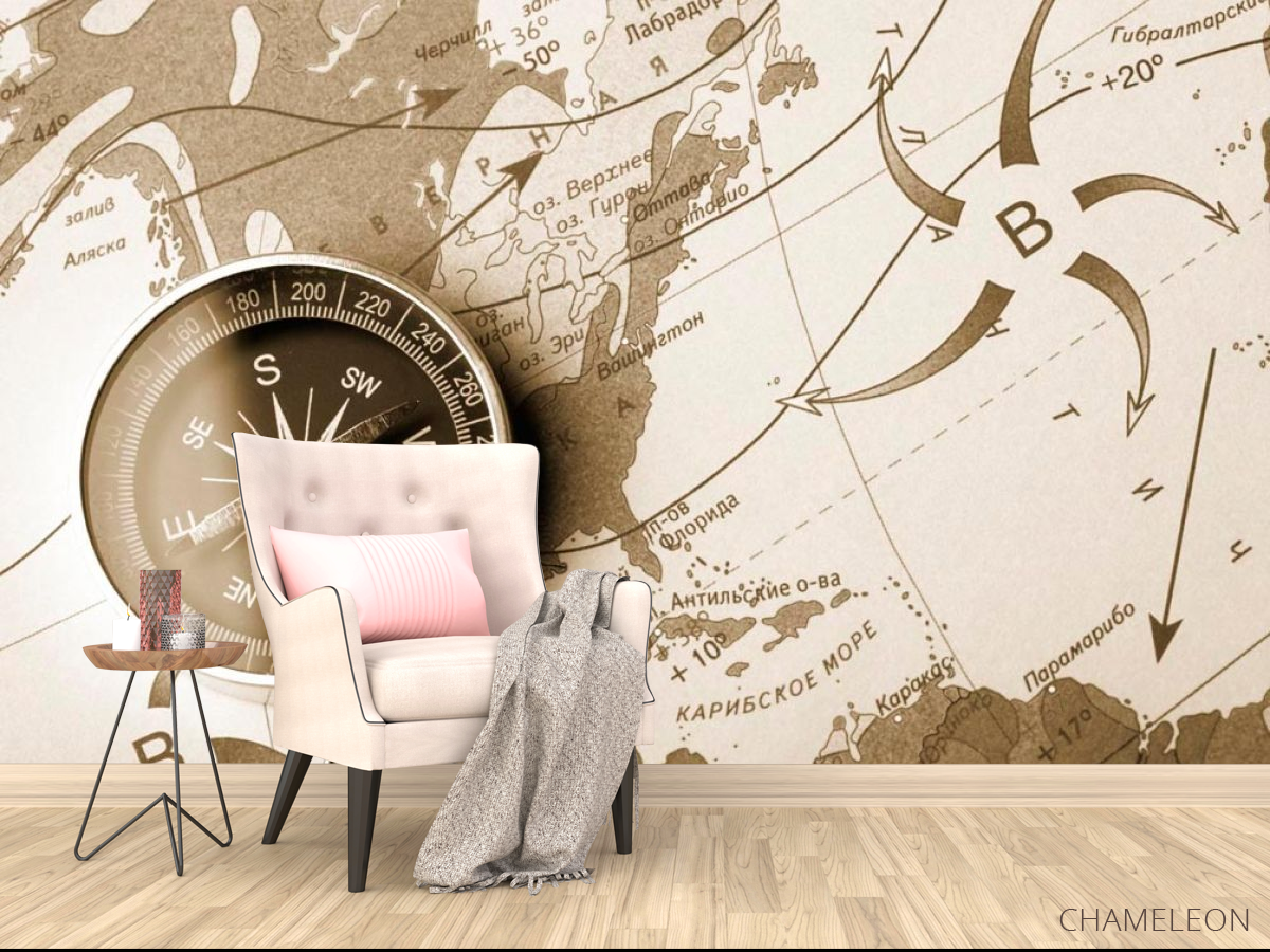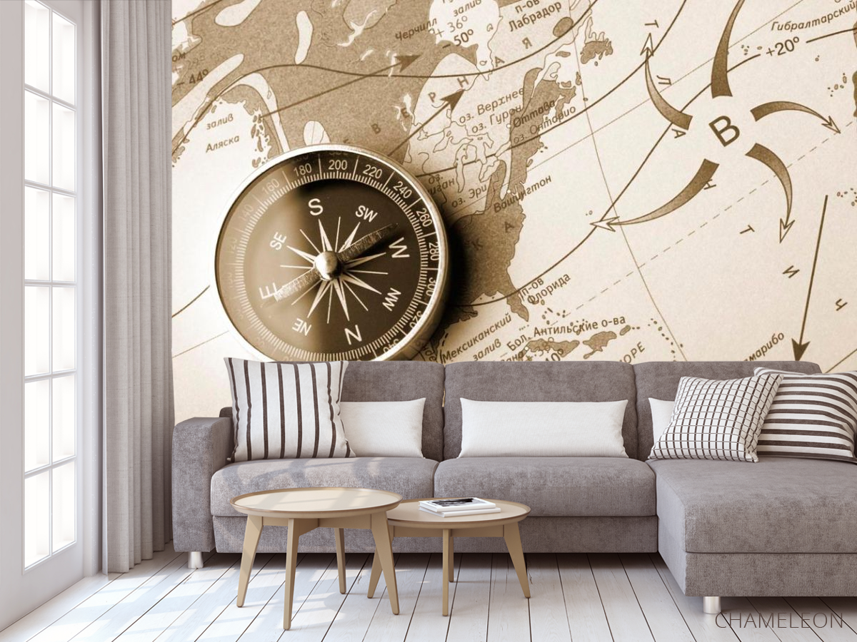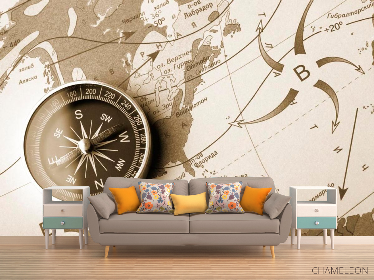 «Фотообои Компас и карта», (арт. 0292) - купить в интернет-магазине Chameleon