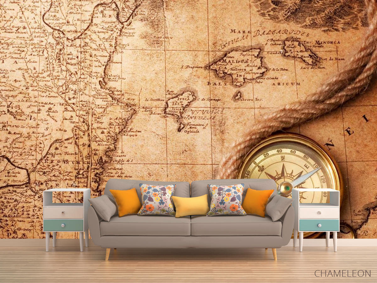 «Фотообои Компас и карта мира», (арт. 0302) - купить в интернет-магазине Chameleon