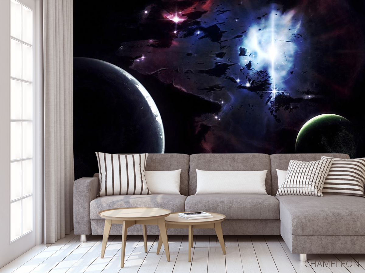 Что же еще настолько идеально будет смотреться как в спальне, так и гостиной или детской комнате? Конечно же - модные фотообои с изображением космоса. Они сочетаются с любым стилем интерьера, но лучше всего подходят под современные оформления и минимализм. Благодаря высокому качеству печати изображения, вы не только можете добиться эффекта погружения в атмосферу, но и сделаете комнату очень стильной. Фотообои космос отличаются универсальностью и практичностью. Они хорошо подходят для маленьких или узких комнат, потому что могут визуально расширить пространство, сделать помещение более свободным. Кроме того, вы можете купить фотообои по низкой цене в нашем интернет-магазине Chameleons.