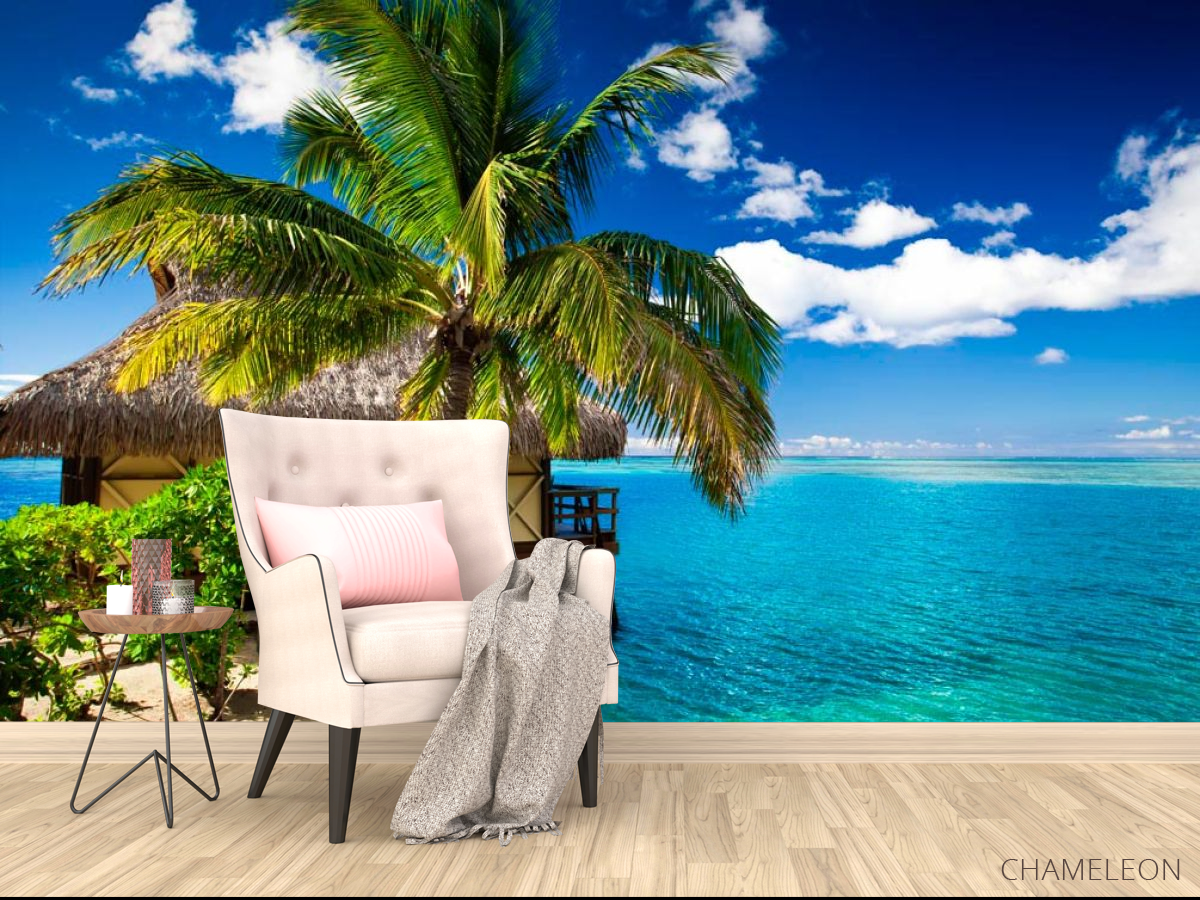 «Фотообои Пальма с хижиной», (арт. 10758) - купить в интернет-магазине Chameleon