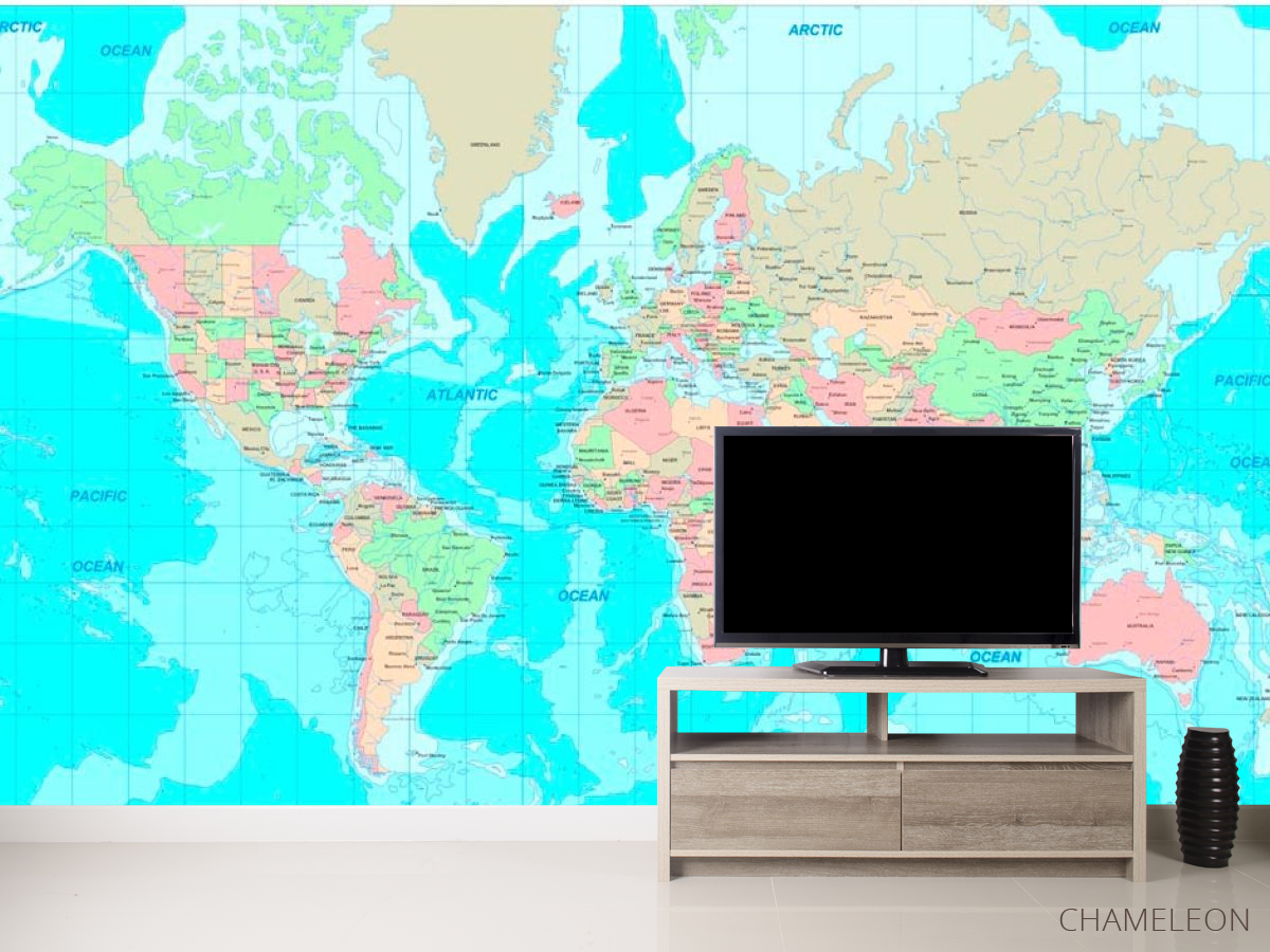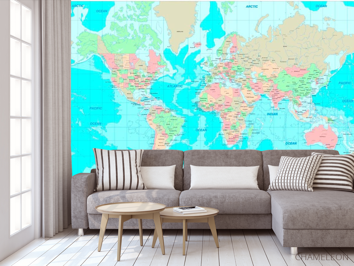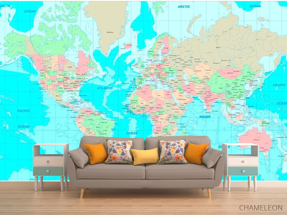 Фотообои карта мира являются очень хорошим выбором как для дома (в гостиную, рабочий кабинет или кухню), так и для других зданий (в школу, ресторан или салон красоты). Они выглядят роскошно, имеют стильный дизайн и отлично подходят под любое оформление комнаты. Современные фотообои на стену производятся из надежного материала, который не портится и не царапается. Изображение - это полностью безопасная краска, которая не вызывает аллергии, а также остается красивым в течение многих лет. Вы можете уверенно использовать обои, которые украсят любое помещение. Купить стильные и оригинальные фотообои с картой мира можно в интернет-магазине Chameleons.