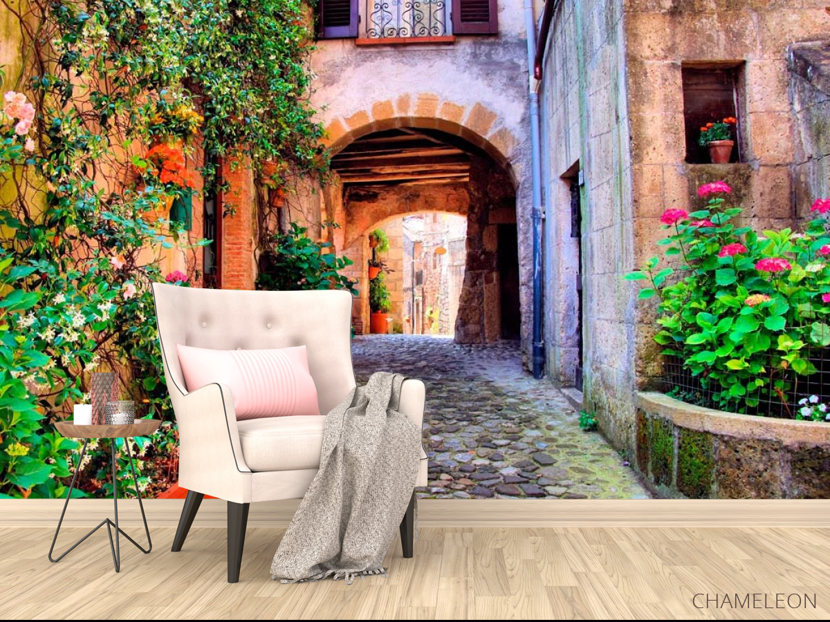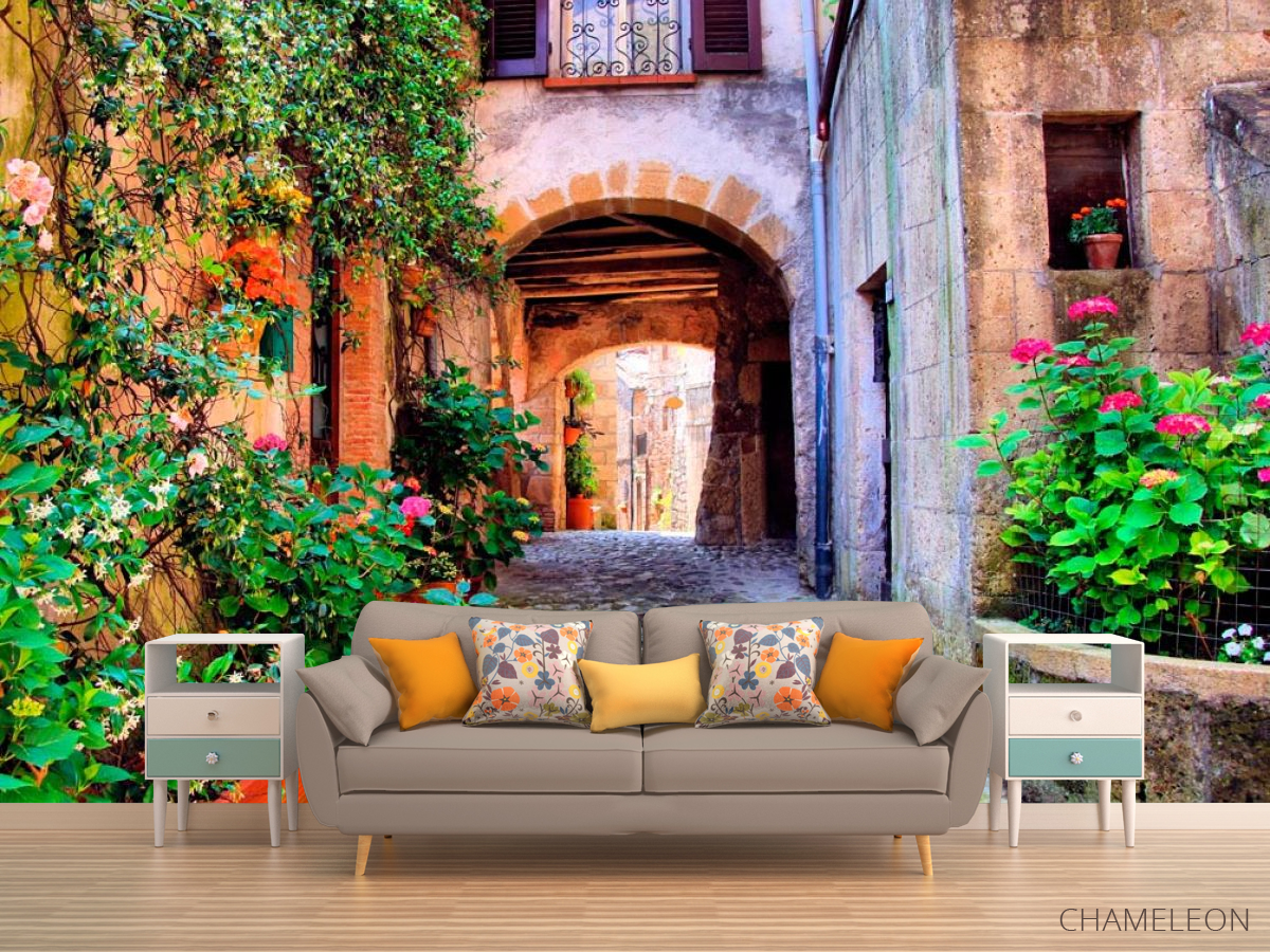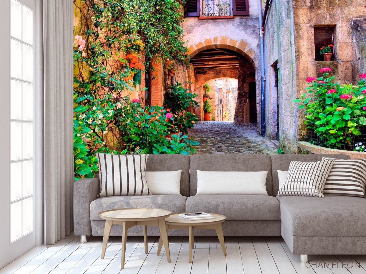 Фотообои Арочная улочка с цветами