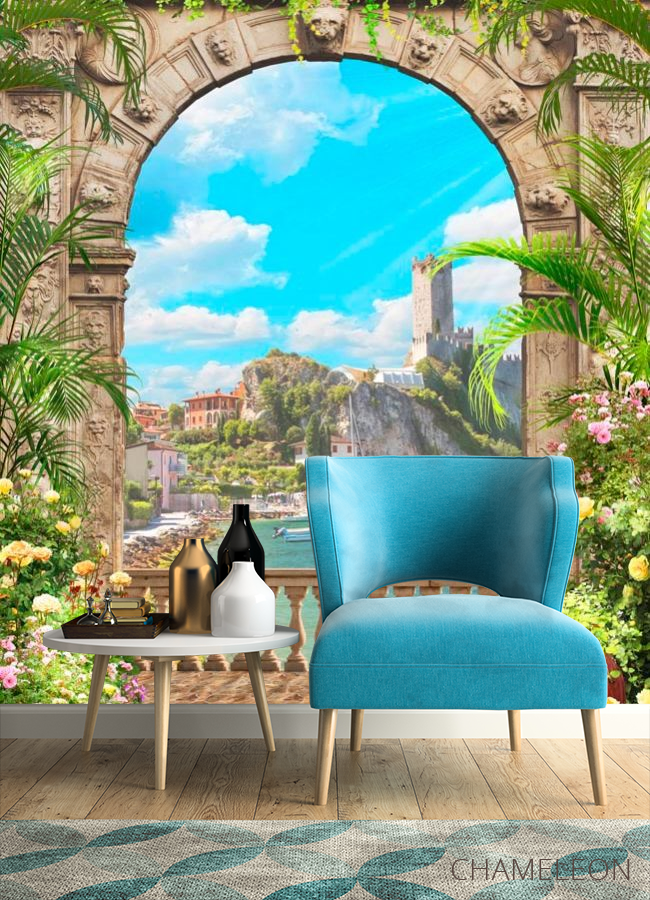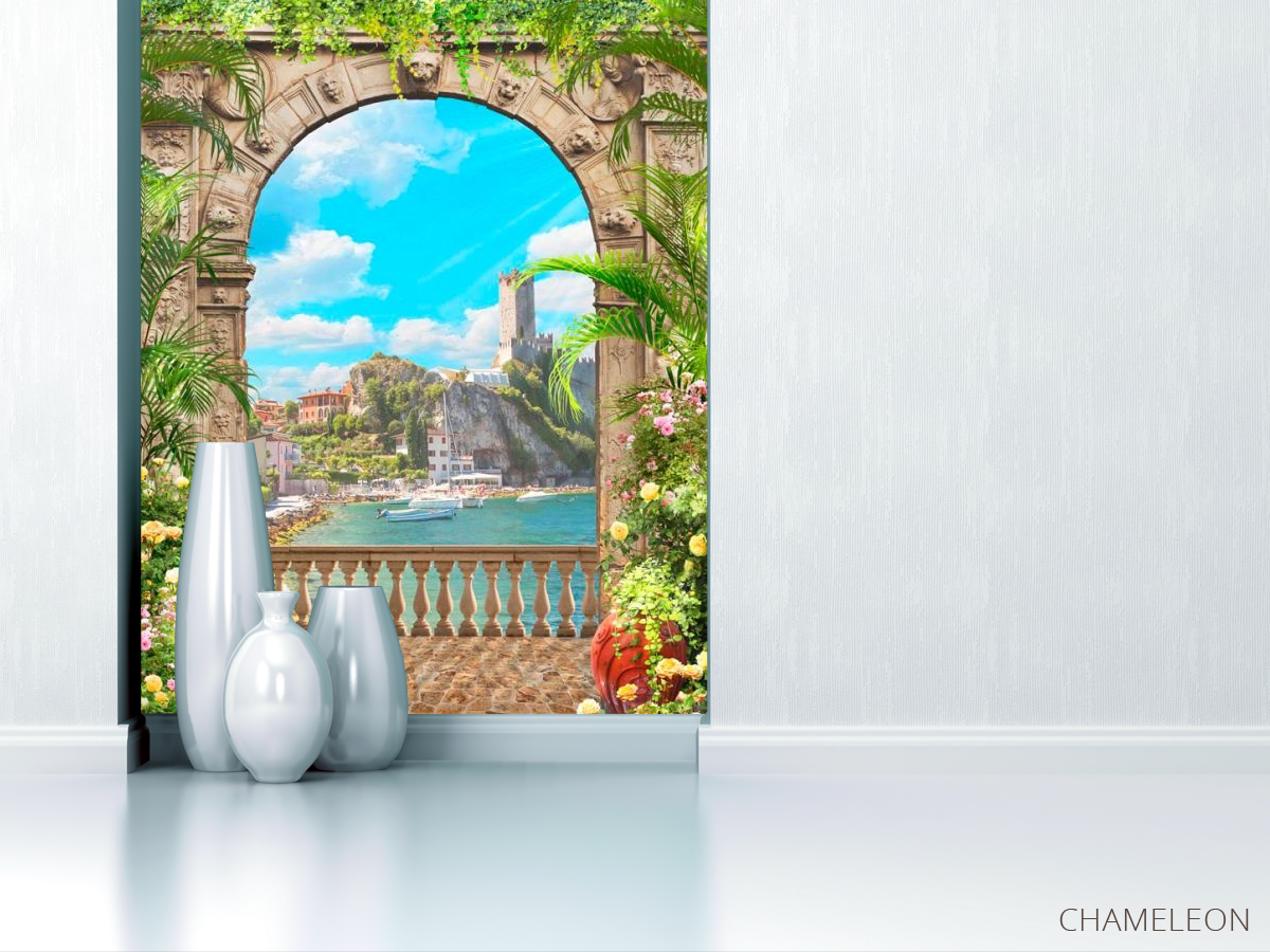 Фотообои арки – отличное решение для тех, кто желает визуально расширить помещения и в целом придать оригинальности интерьеру. Разнообразие сюжетов позволит выбрать необходимый и подходящий под стиль вашего помещения. Изображение арки архитектурно обрамлено и открывает красивые виды на море, горы или поля. Фотообои арки станут своеобразным окном с завораживающей панорамой, а это несомненно придаст комнате изюминки. Обои выполнены качественно, из безопасных и стойких материалов. Рисунок нанесен очень реалистично и четко. Покрытие не выгорает на солнце, а значит будет радовать вас долгие годы. Основу для фотообоев вы можете выбрать бумажную или флизилиновую. Клеить фотообои Арки очень легко: достаточно нанести клей на стенку и прикрепить полотно.
