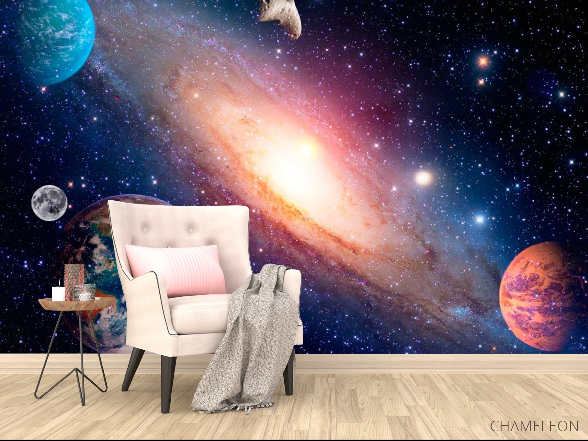 Что же еще настолько идеально будет смотреться как в спальне, так и гостиной или детской комнате? Конечно же - модные фотообои с изображением космоса. Они сочетаются с любым стилем интерьера, но лучше всего подходят под современные оформления и минимализм. Благодаря высокому качеству печати изображения, вы не только можете добиться эффекта погружения в атмосферу, но и сделаете комнату очень стильной. Фотообои космос отличаются универсальностью и практичностью. Они хорошо подходят для маленьких или узких комнат, потому что могут визуально расширить пространство, сделать помещение более свободным. Кроме того, вы можете купить фотообои по низкой цене в нашем интернет-магазине Chameleons.