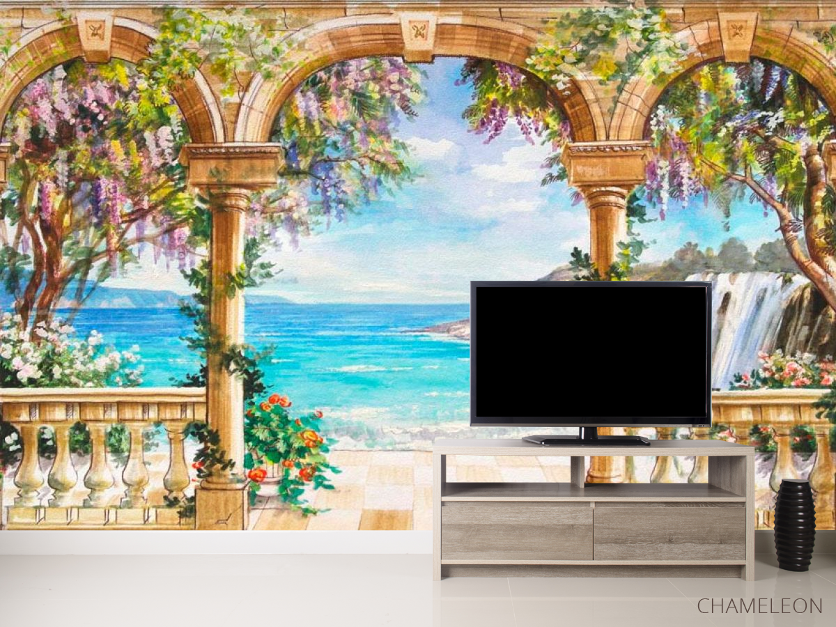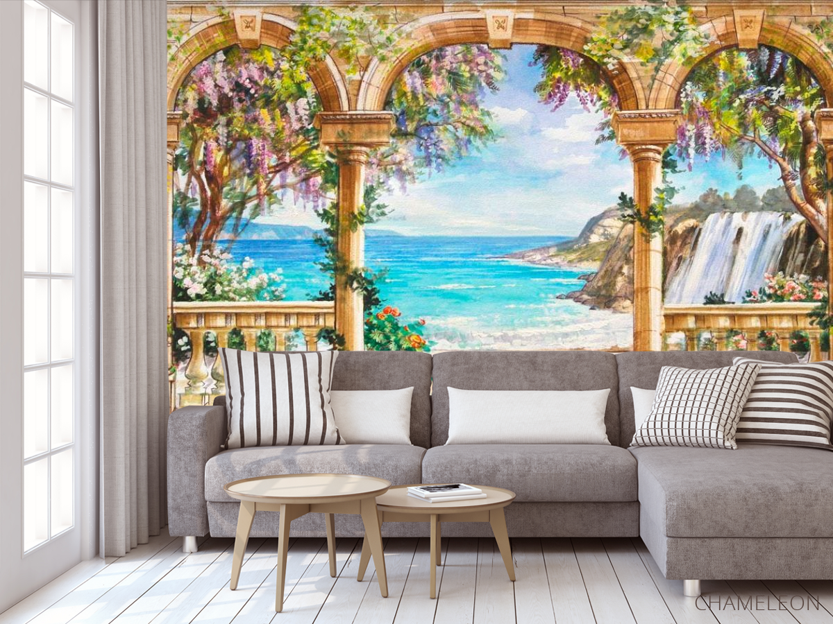 Фотообои арки – отличное решение для тех, кто желает визуально расширить помещения и в целом придать оригинальности интерьеру. Разнообразие сюжетов позволит выбрать необходимый и подходящий под стиль вашего помещения. Изображение арки архитектурно обрамлено и открывает красивые виды на море, горы или поля. Фотообои арки станут своеобразным окном с завораживающей панорамой, а это несомненно придаст комнате изюминки. Обои выполнены качественно, из безопасных и стойких материалов. Рисунок нанесен очень реалистично и четко. Покрытие не выгорает на солнце, а значит будет радовать вас долгие годы. Основу для фотообоев вы можете выбрать бумажную или флизилиновую. Клеить фотообои Арки очень легко: достаточно нанести клей на стенку и прикрепить полотно.
