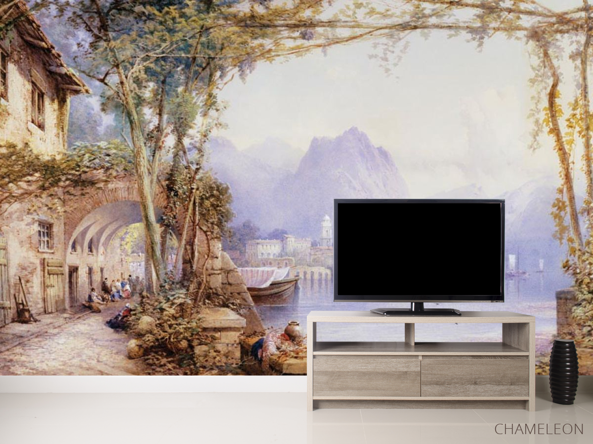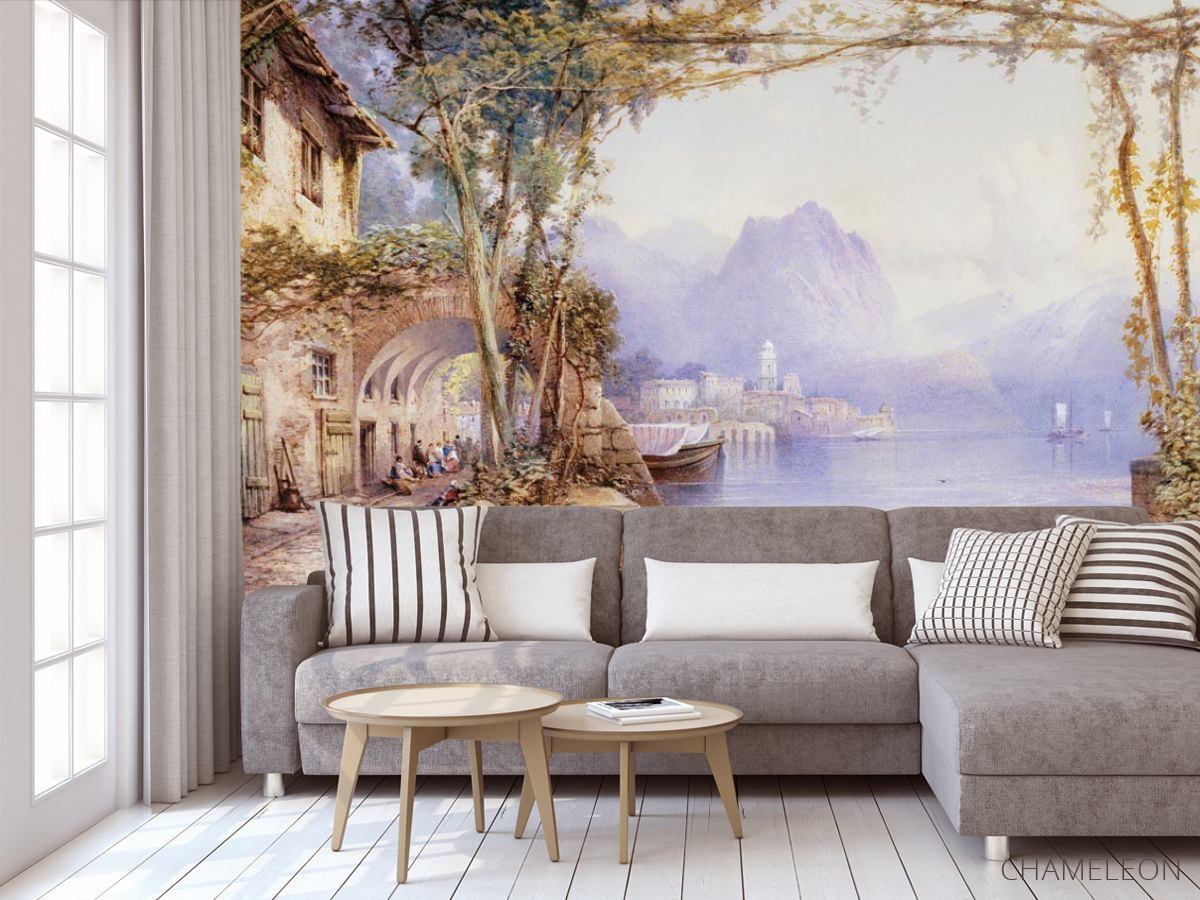Фотообои Горы, лодки, люди