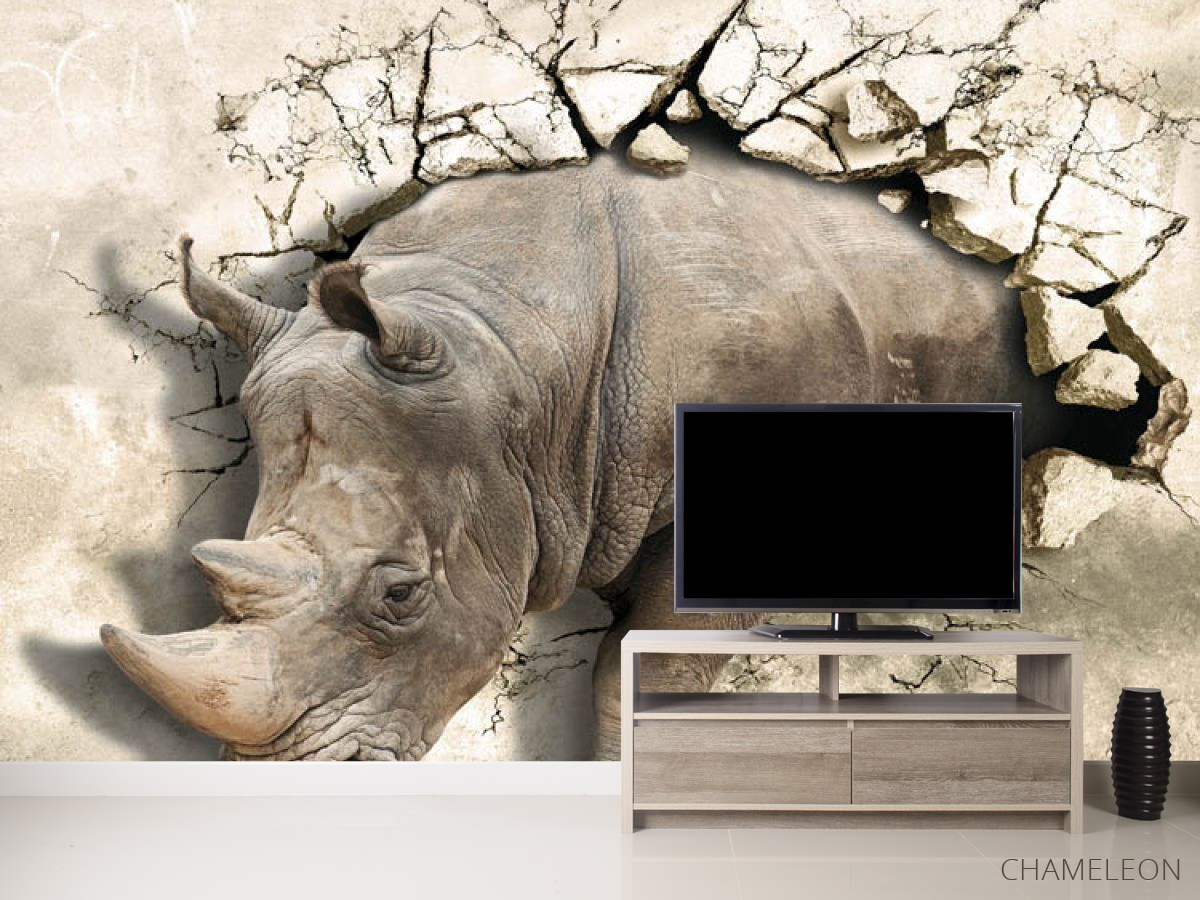 «Фотообои носорог выходит со стены», (арт. 18134) - купить в интернет-магазине Chameleon