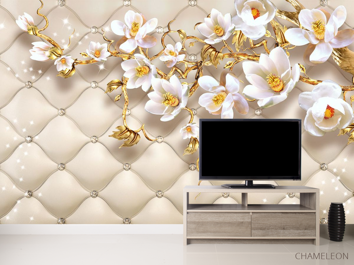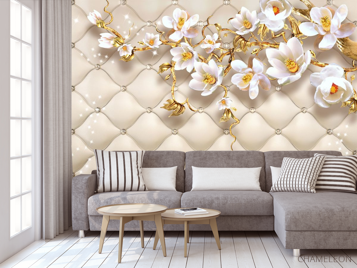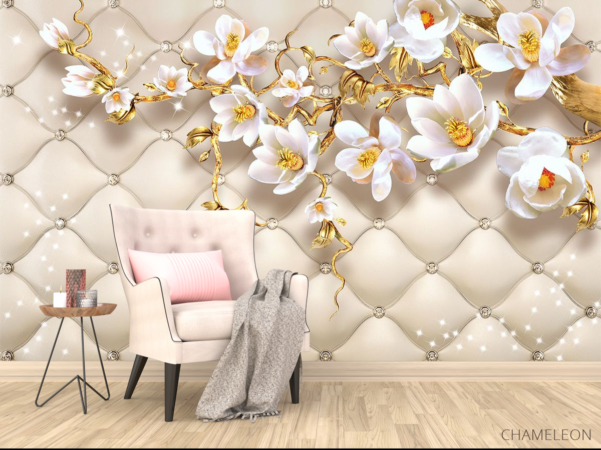 «Фотообои золотые цветы на каретной стяжке», (арт. 18792g) - купить в интернет-магазине Chameleon