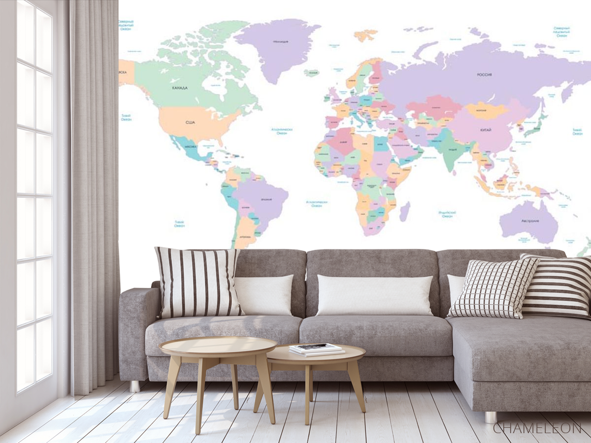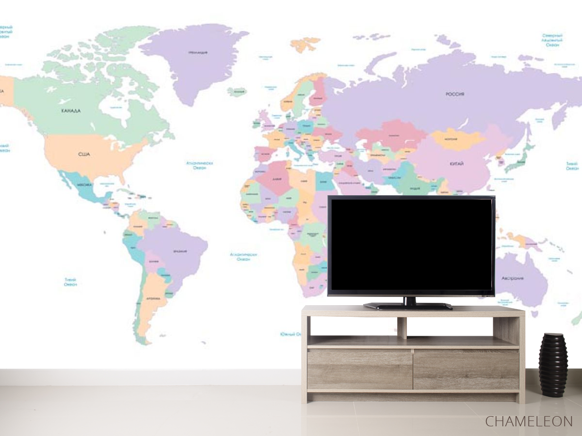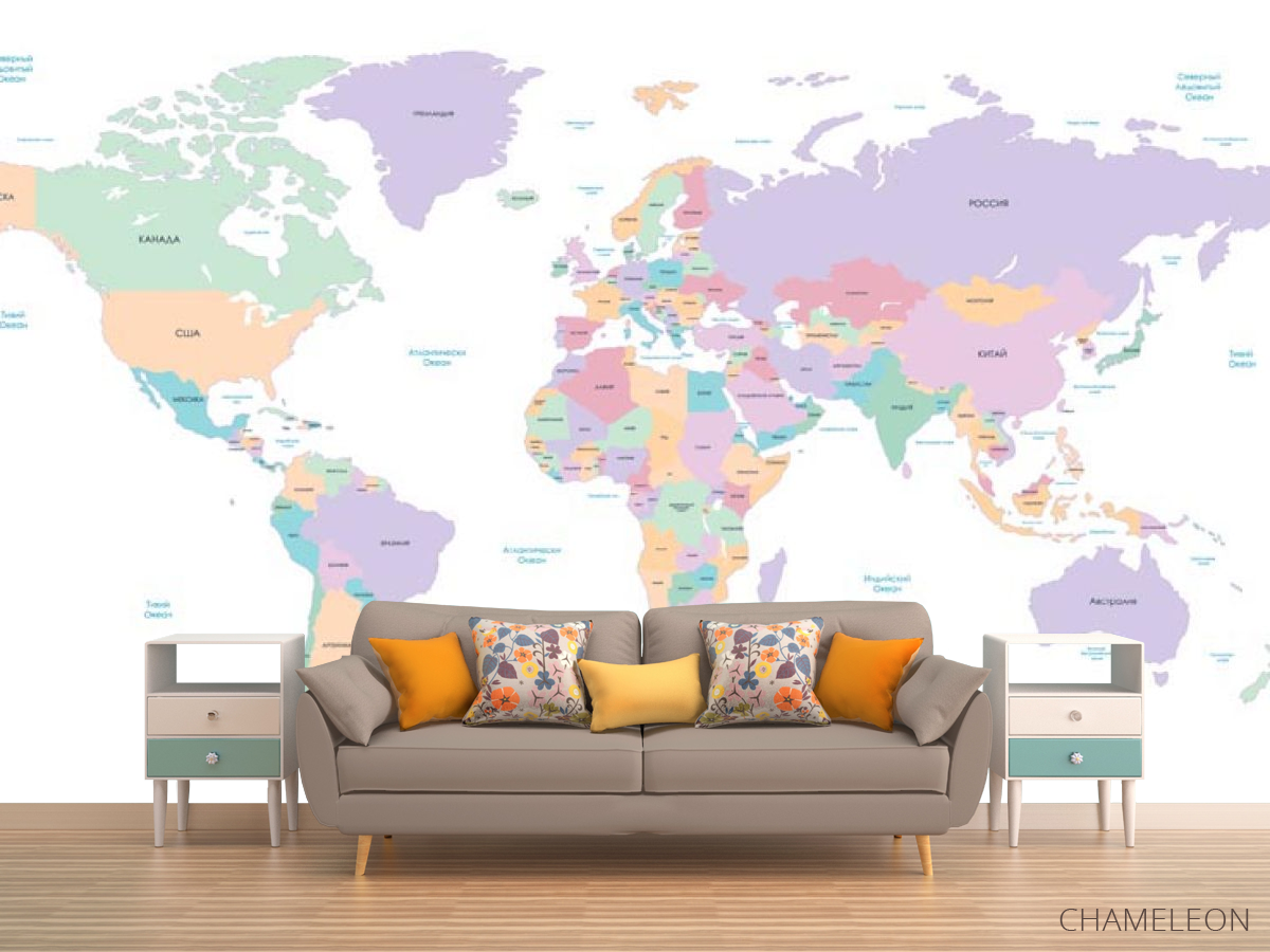 Фотообои карта мира являются очень хорошим выбором как для дома (в гостиную, рабочий кабинет или кухню), так и для других зданий (в школу, ресторан или салон красоты). Они выглядят роскошно, имеют стильный дизайн и отлично подходят под любое оформление комнаты. Современные фотообои на стену производятся из надежного материала, который не портится и не царапается. Изображение - это полностью безопасная краска, которая не вызывает аллергии, а также остается красивым в течение многих лет. Вы можете уверенно использовать обои, которые украсят любое помещение. Купить стильные и оригинальные фотообои с картой мира можно в интернет-магазине Chameleons.