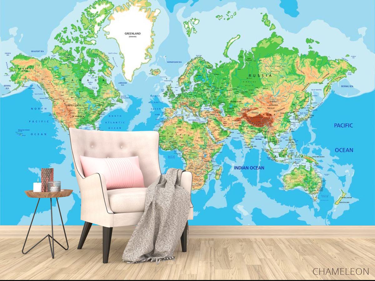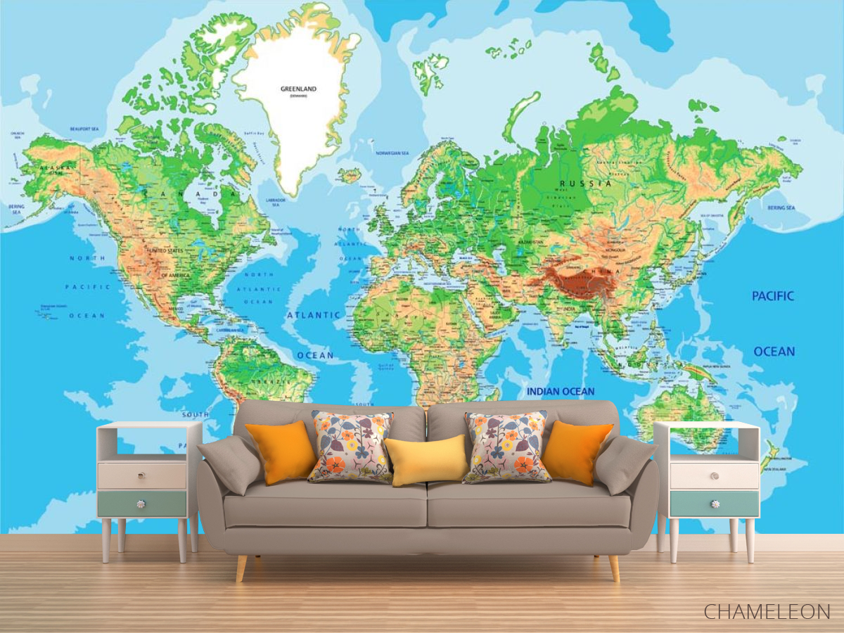 Фотообои карта мира являются очень хорошим выбором как для дома (в гостиную, рабочий кабинет или кухню), так и для других зданий (в школу, ресторан или салон красоты). Они выглядят роскошно, имеют стильный дизайн и отлично подходят под любое оформление комнаты. Современные фотообои на стену производятся из надежного материала, который не портится и не царапается. Изображение - это полностью безопасная краска, которая не вызывает аллергии, а также остается красивым в течение многих лет. Вы можете уверенно использовать обои, которые украсят любое помещение. Купить стильные и оригинальные фотообои с картой мира можно в интернет-магазине Chameleons.