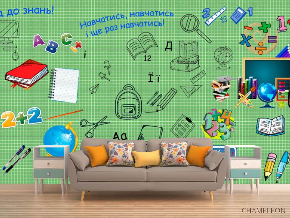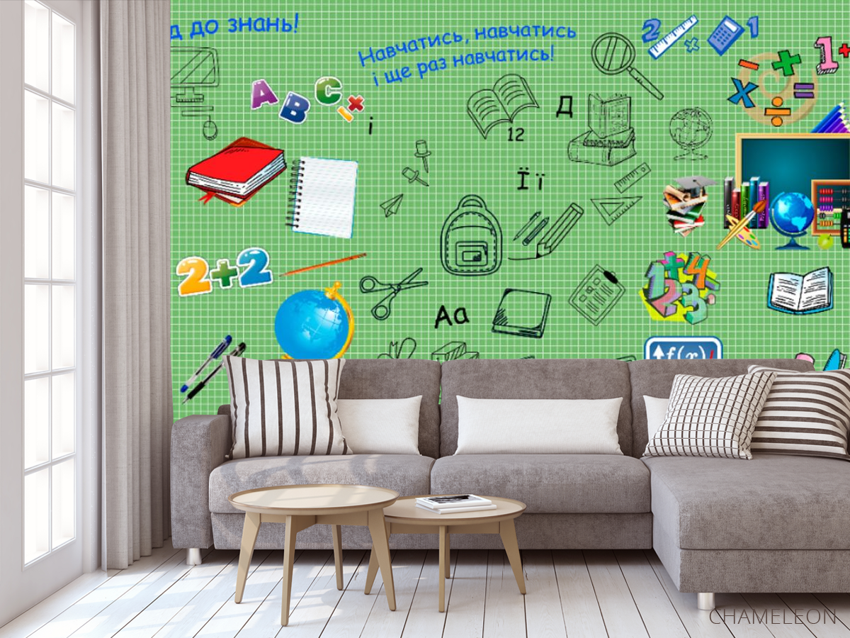 Времяпровождение в школе занимает весомую часть жизни и хочется, чтобы оно было комфортным и уютным. Фотообои для школы – отличный вариант украсить класс, коридор, столовую или библиотеку. Обширный выбор ярких изображений точно не оставит равнодушным. Географические карты, портреты писателей, математические формулы, таблица Менделеева – каждый найдет то, что подходит под стиль кабинета. Фотообои изготовлены из материалов высокого качества, которые не вызывают аллергию, не выделяют токсических веществ и абсолютно безопасны. Рисунок нанесен очень четко и детально, а благодаря качественным краскам, он не выгорает и остается в первозданном виде на протяжении нескольких лет.
