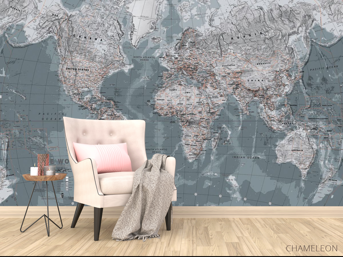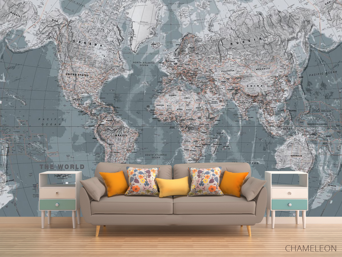 Фотообои карта мира являются очень хорошим выбором как для дома (в гостиную, рабочий кабинет или кухню), так и для других зданий (в школу, ресторан или салон красоты). Они выглядят роскошно, имеют стильный дизайн и отлично подходят под любое оформление комнаты. Современные фотообои на стену производятся из надежного материала, который не портится и не царапается. Изображение - это полностью безопасная краска, которая не вызывает аллергии, а также остается красивым в течение многих лет. Вы можете уверенно использовать обои, которые украсят любое помещение. Купить стильные и оригинальные фотообои с картой мира можно в интернет-магазине Chameleons.