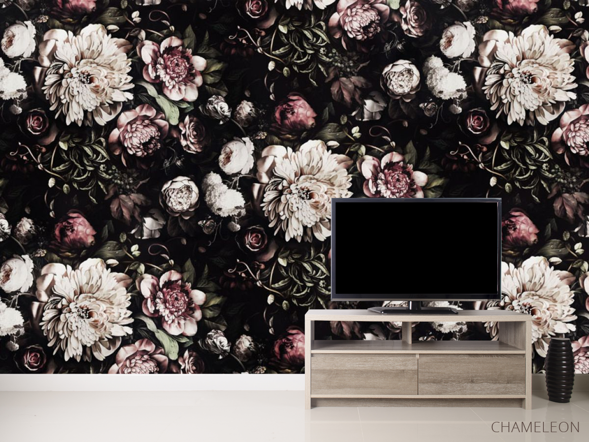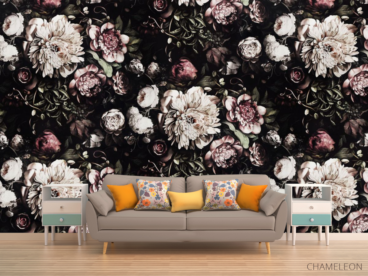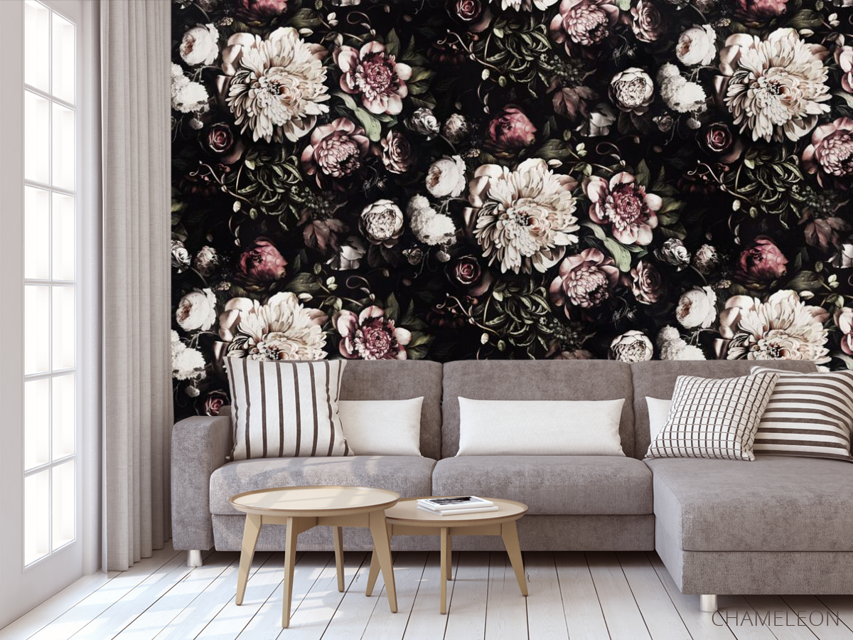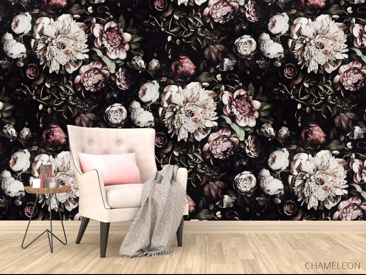 Фотообои Классические цветы на черном фоне