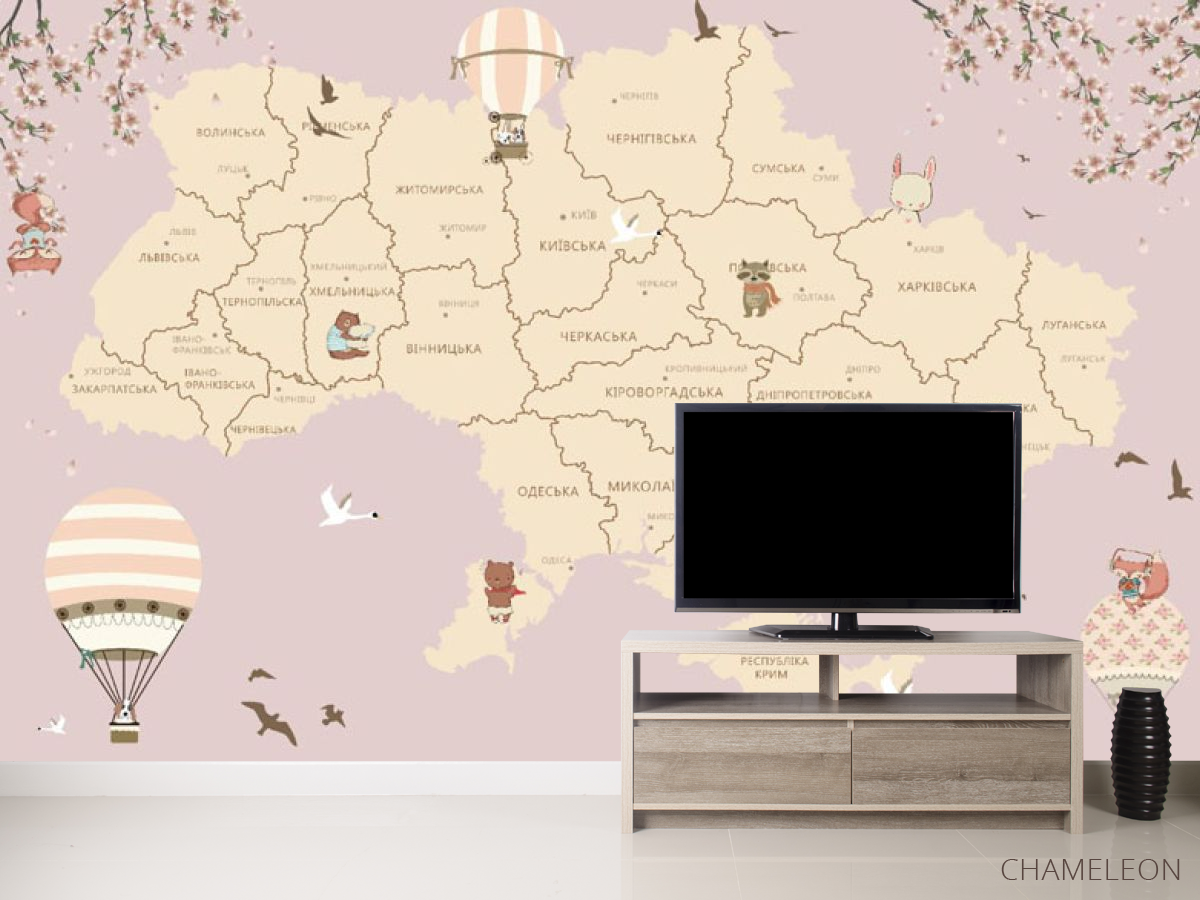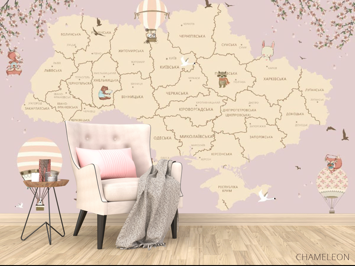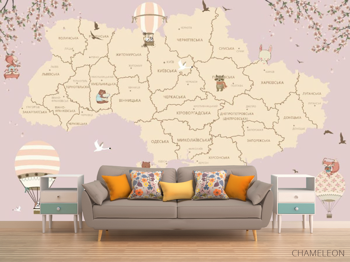 Фотообои Розовая карта Украины в комнате девочки 20104