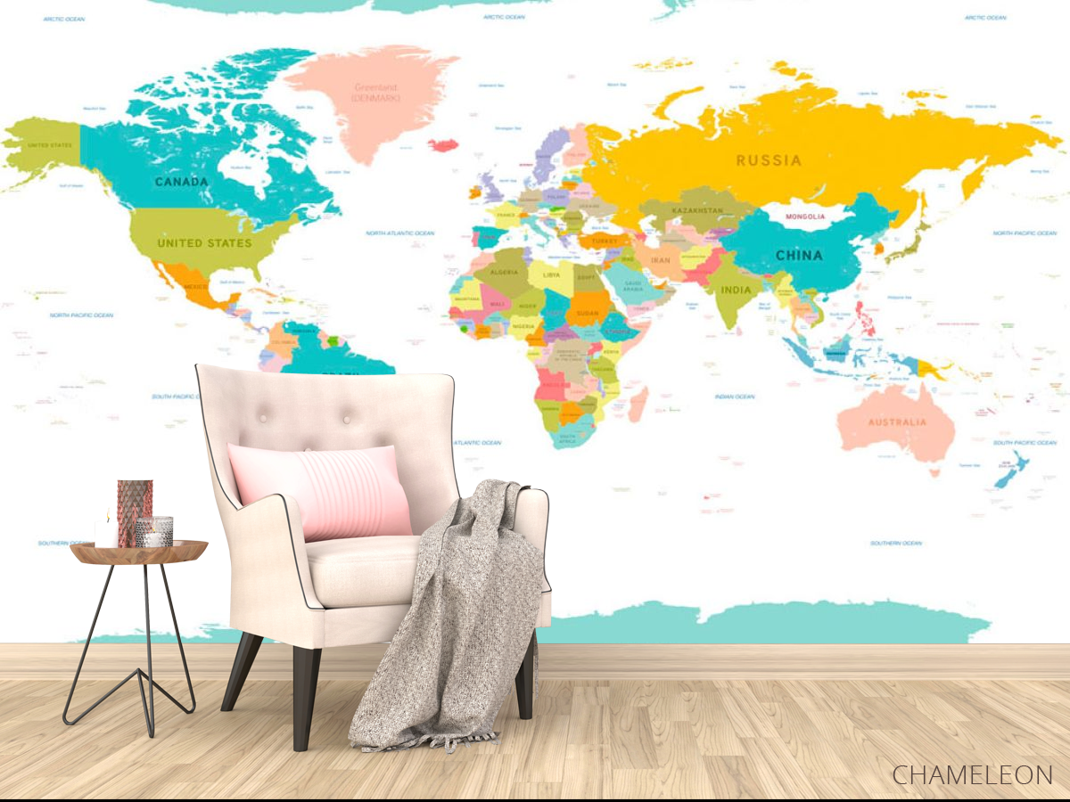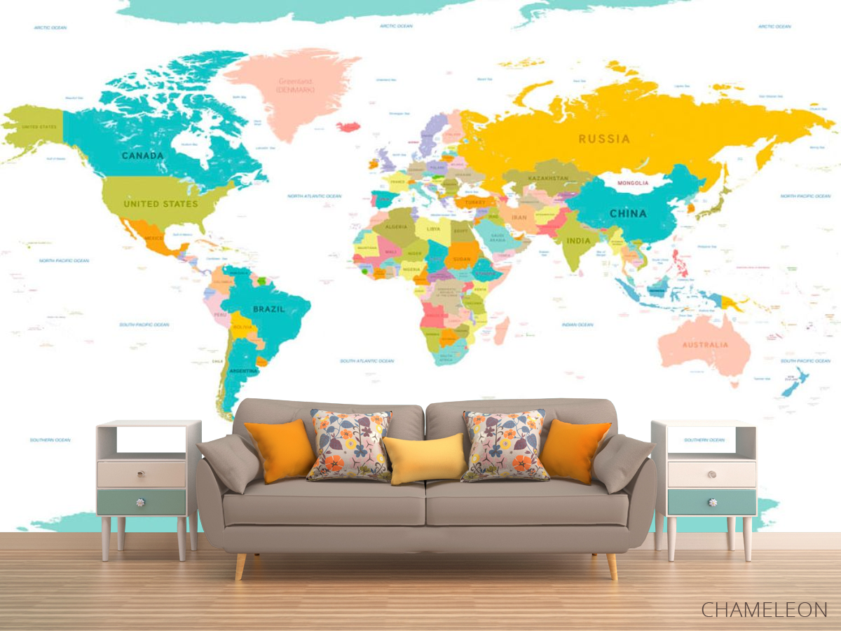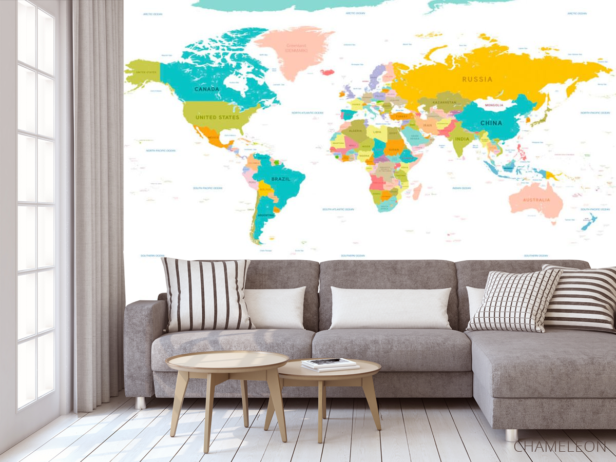 Фотообои карта мира являются очень хорошим выбором как для дома (в гостиную, рабочий кабинет или кухню), так и для других зданий (в школу, ресторан или салон красоты). Они выглядят роскошно, имеют стильный дизайн и отлично подходят под любое оформление комнаты. Современные фотообои на стену производятся из надежного материала, который не портится и не царапается. Изображение - это полностью безопасная краска, которая не вызывает аллергии, а также остается красивым в течение многих лет. Вы можете уверенно использовать обои, которые украсят любое помещение. Купить стильные и оригинальные фотообои с картой мира можно в интернет-магазине Chameleons.