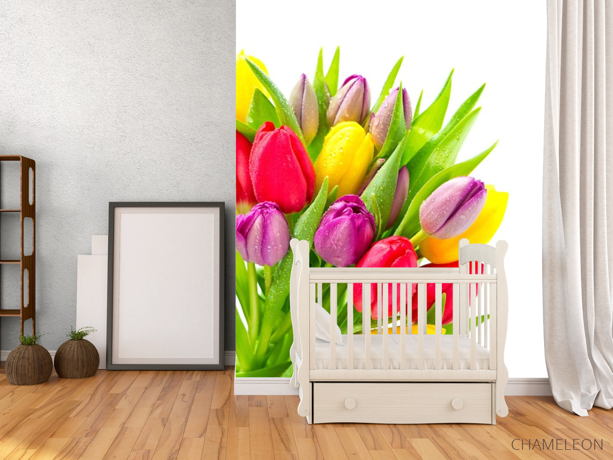 Фотообои разноцветные тюльпаны с каплями 20671