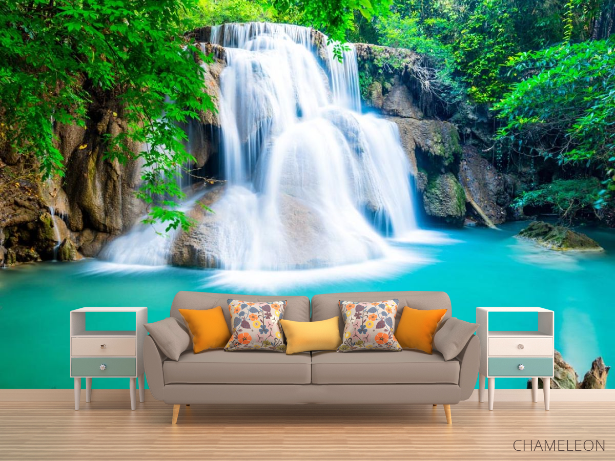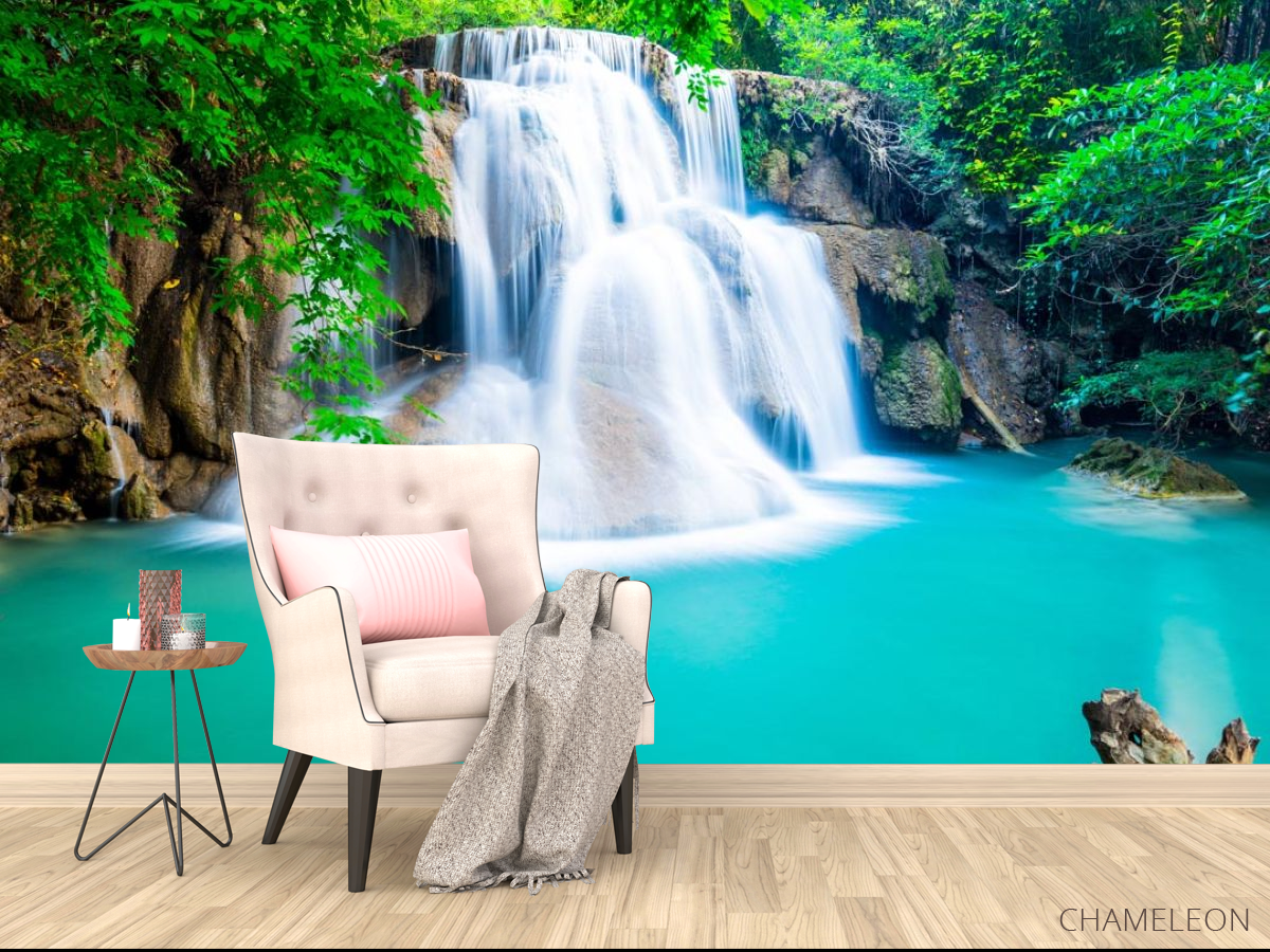 Фотообои водопад и бирюзовое озеро
