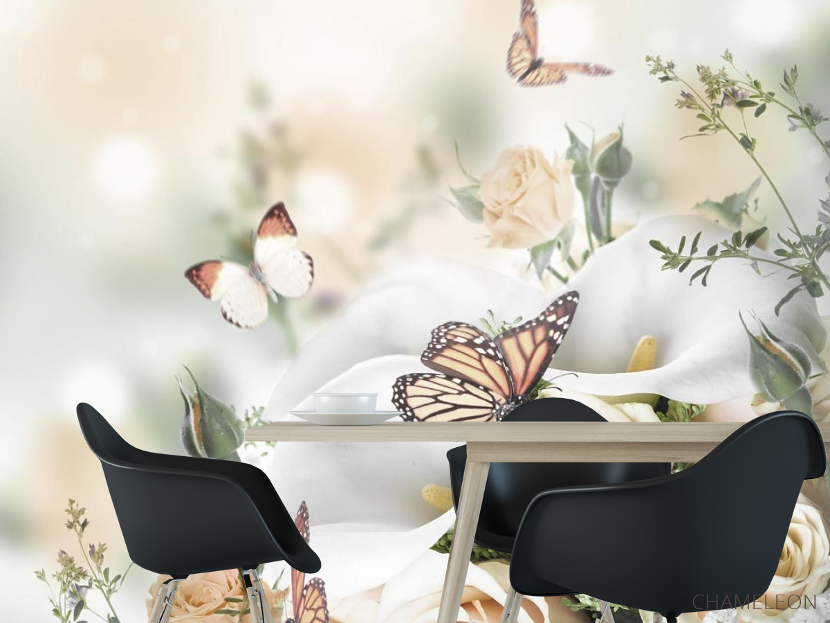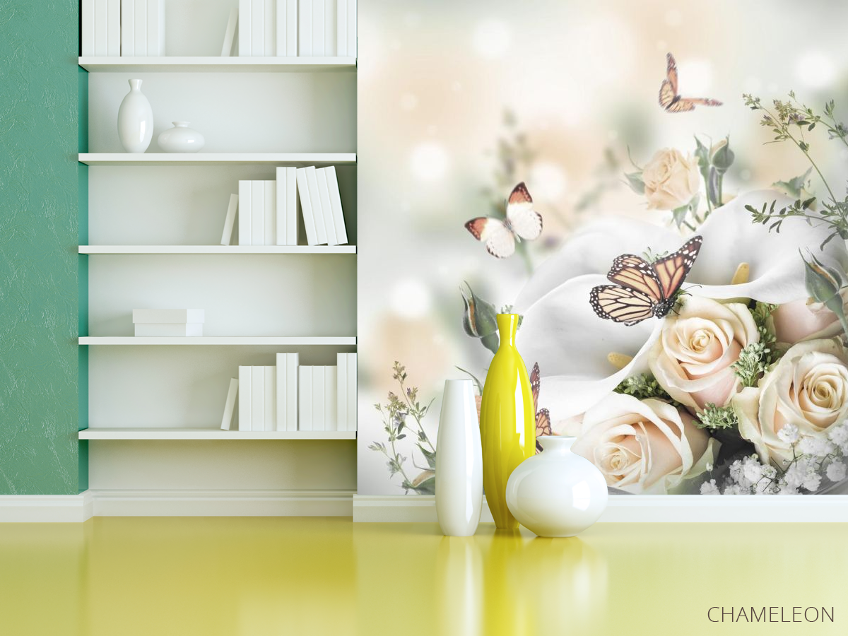 «Фотообои Бабочки над розами», (арт. 20997) - купить в интернет-магазине Chameleon