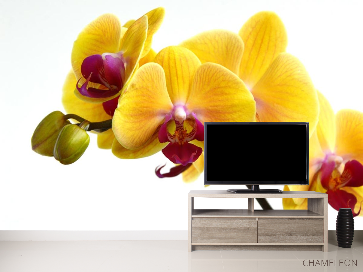 Фотообои желтые орхидеи на белом фоне 21161