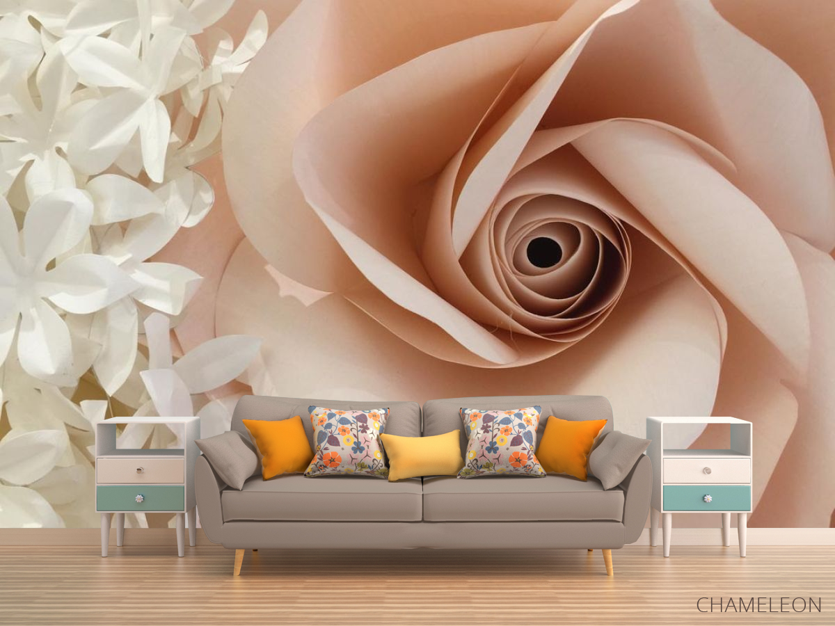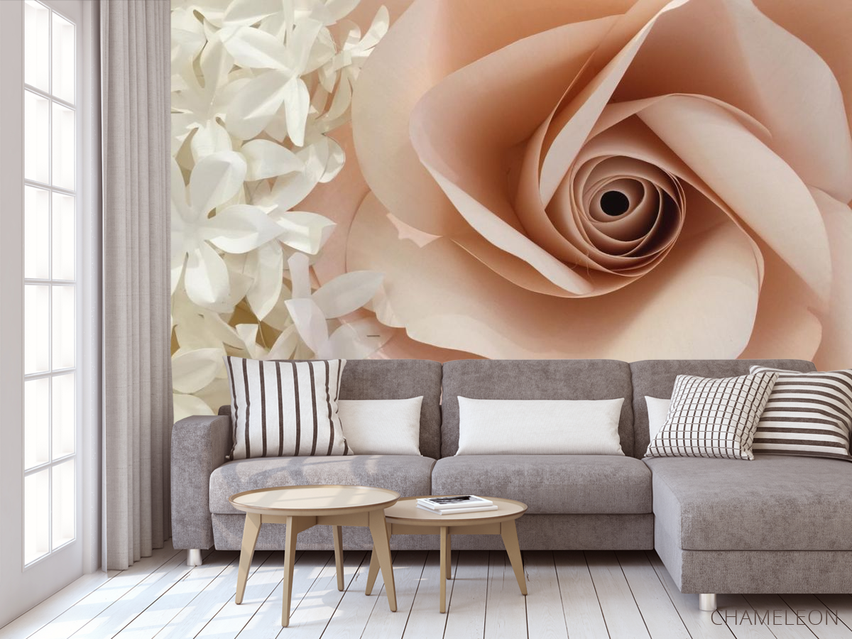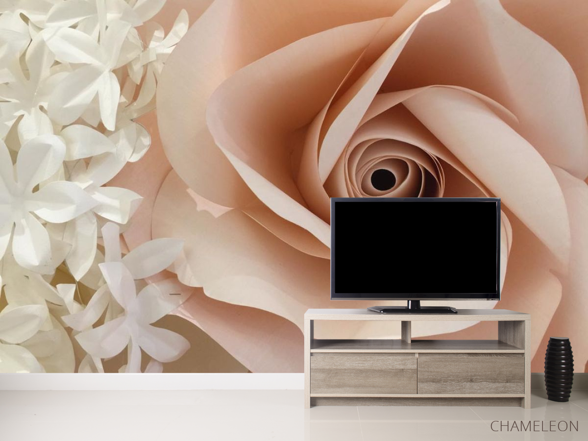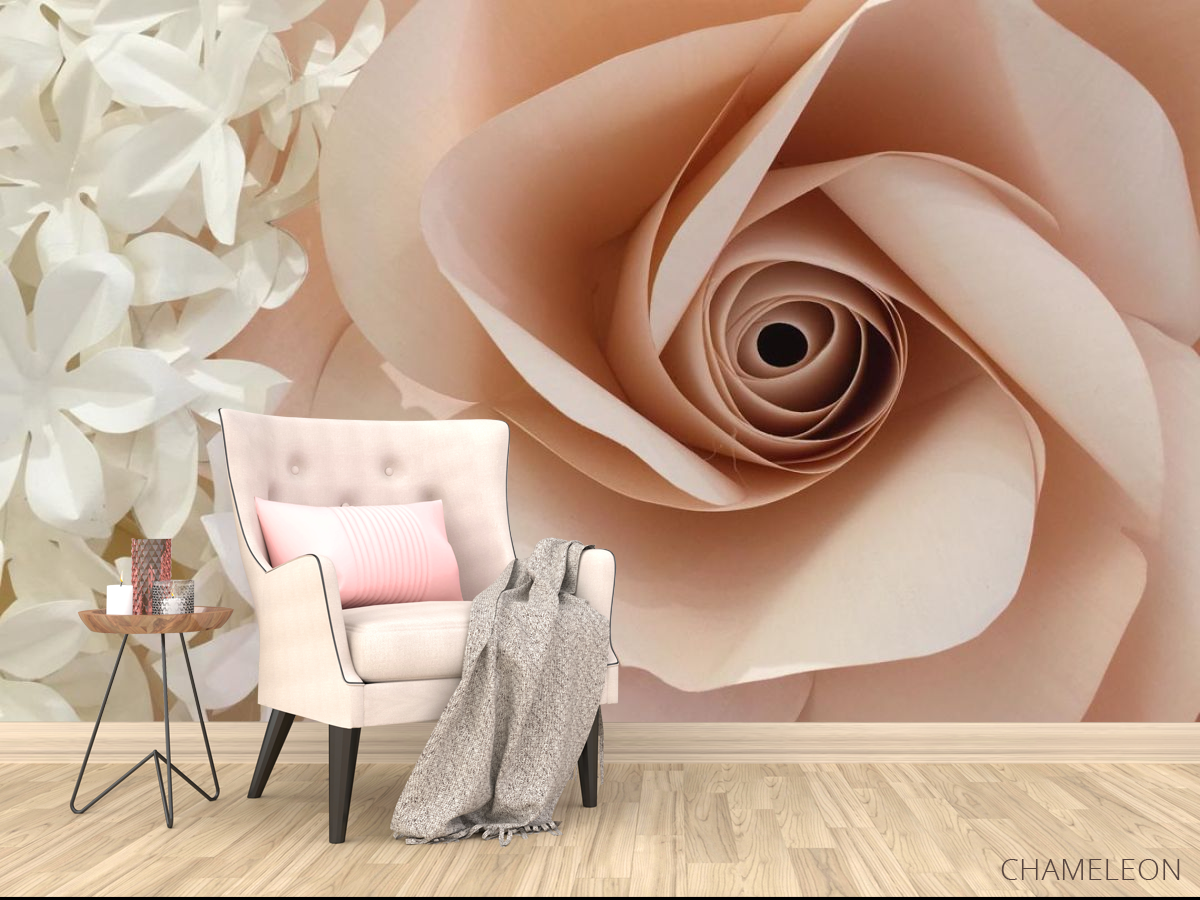 Фотообои большая бежевая роза из бумаги