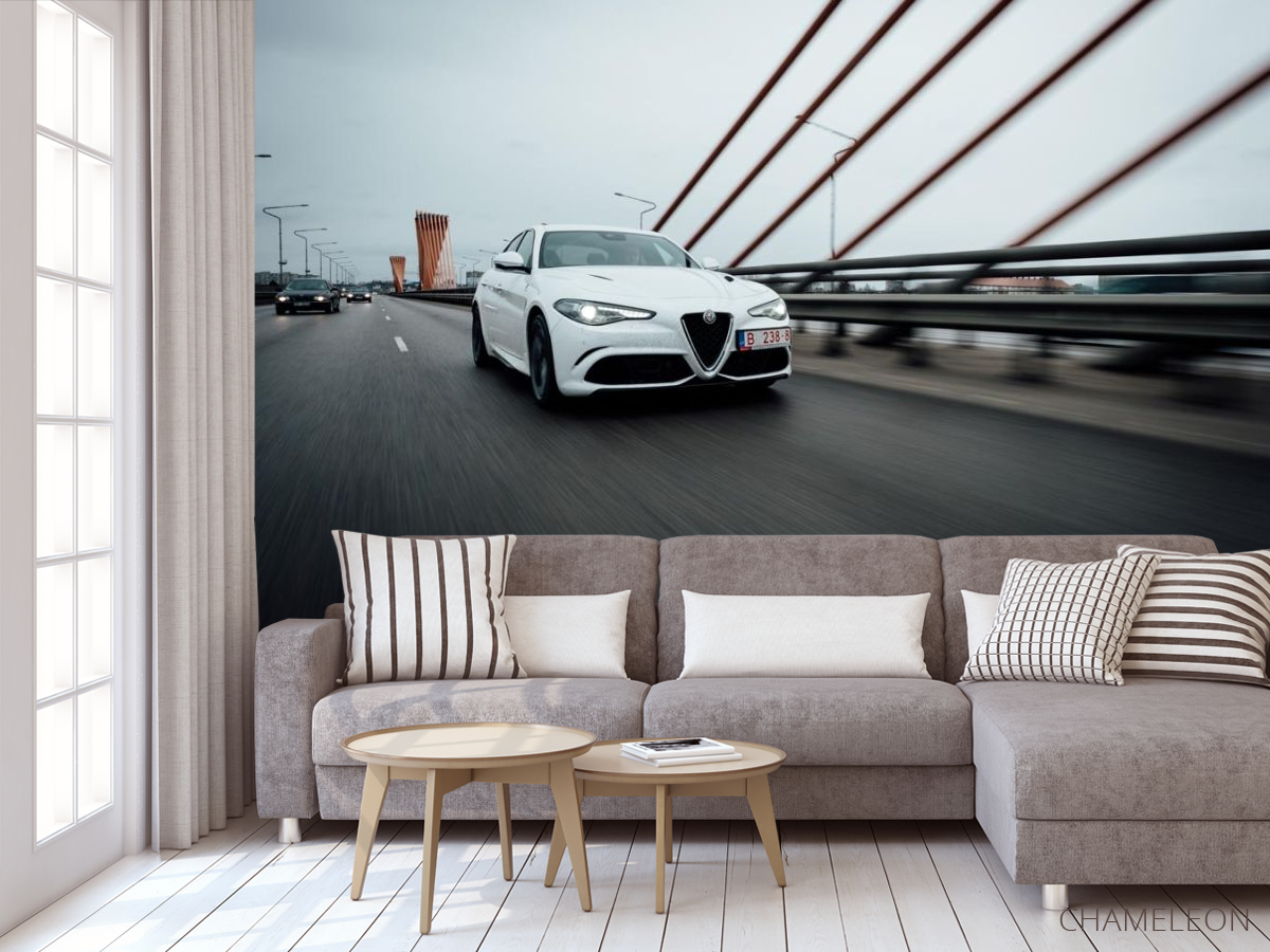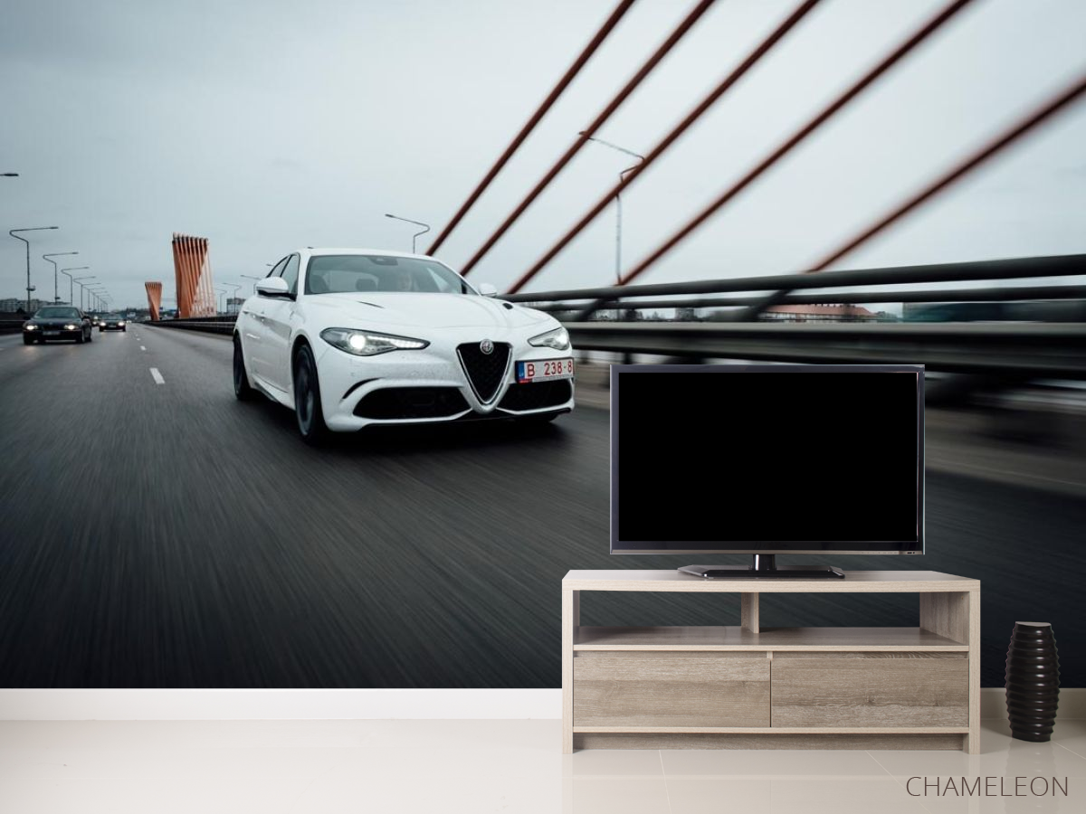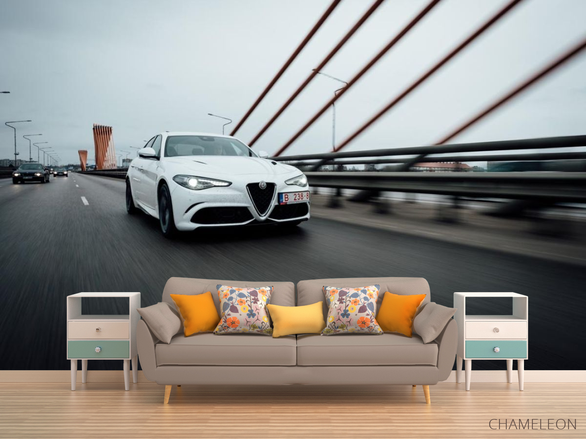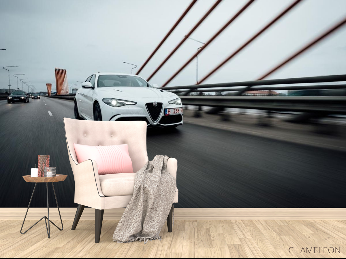 Фотообои роскошная белая машина на мосту