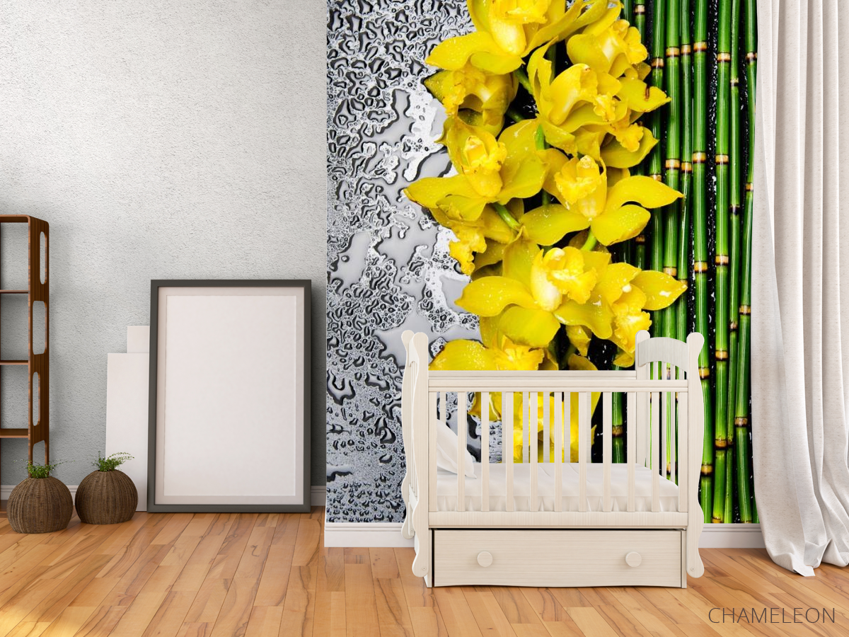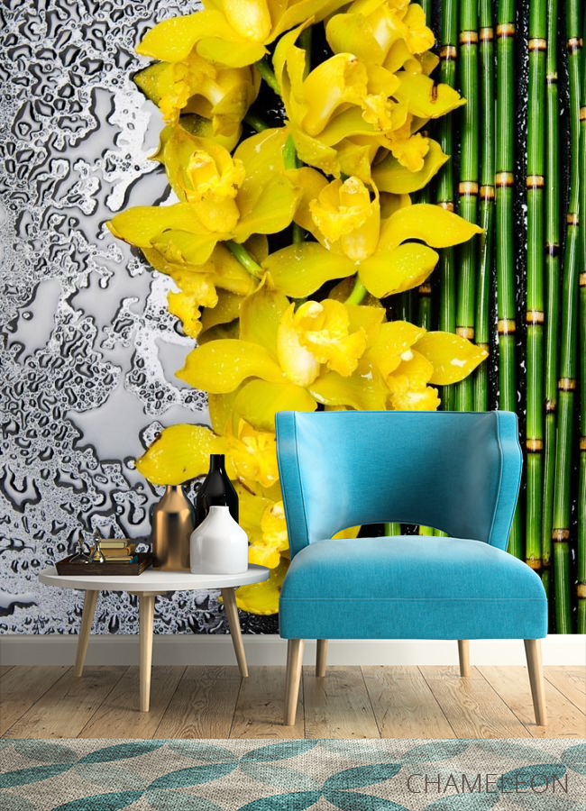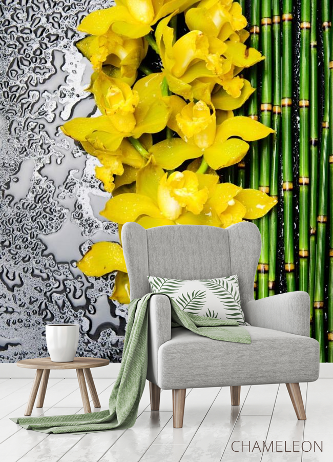 Фотообои желтая орхидея с бамбуком и водой 21435