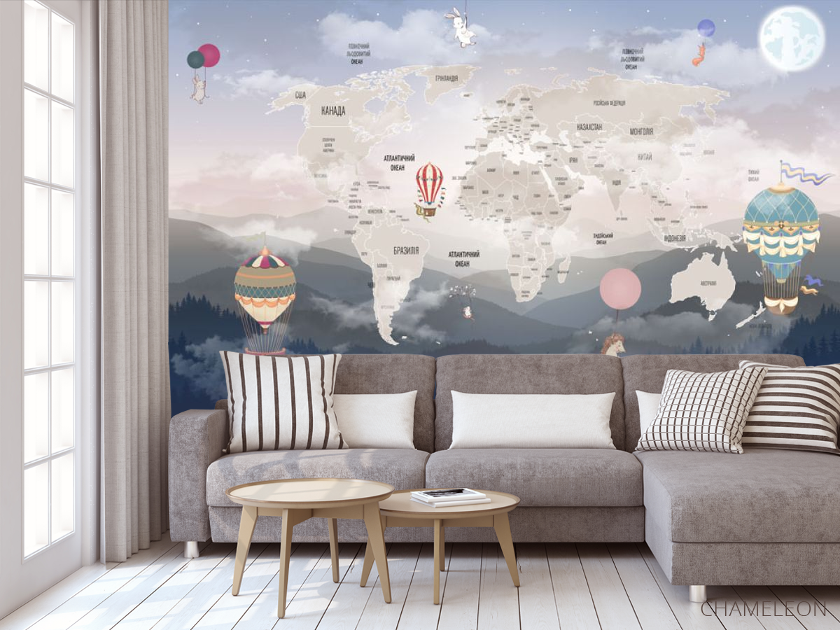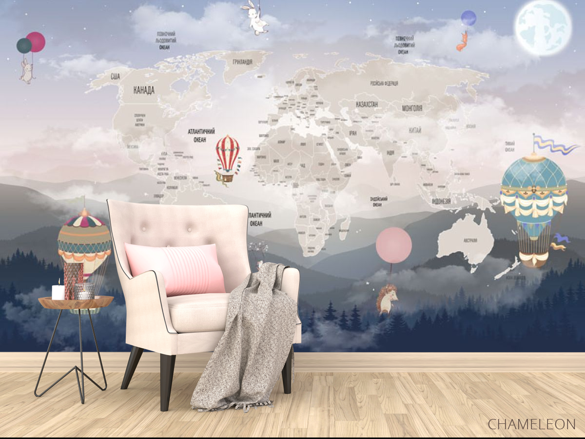 Фотообои Карта детская на фоне скандинавских гор. 22141