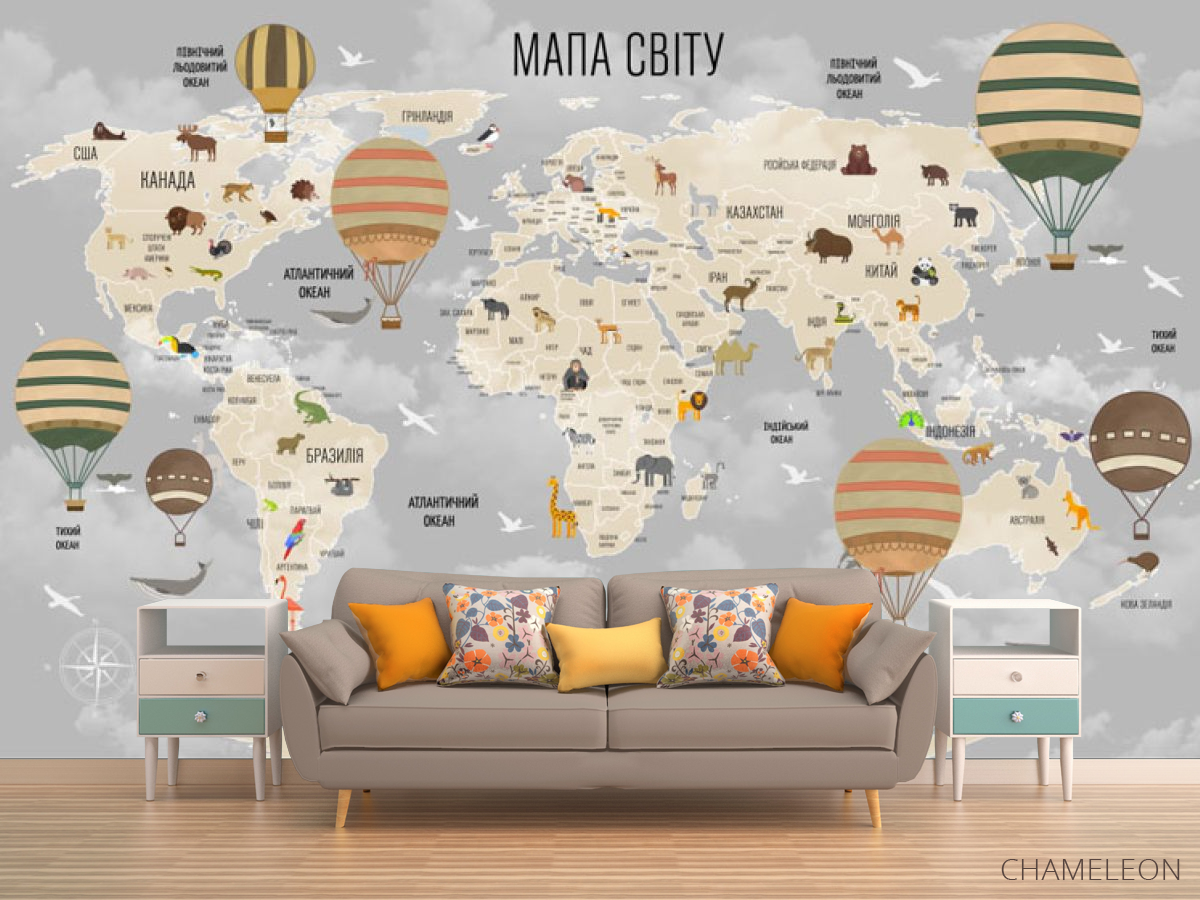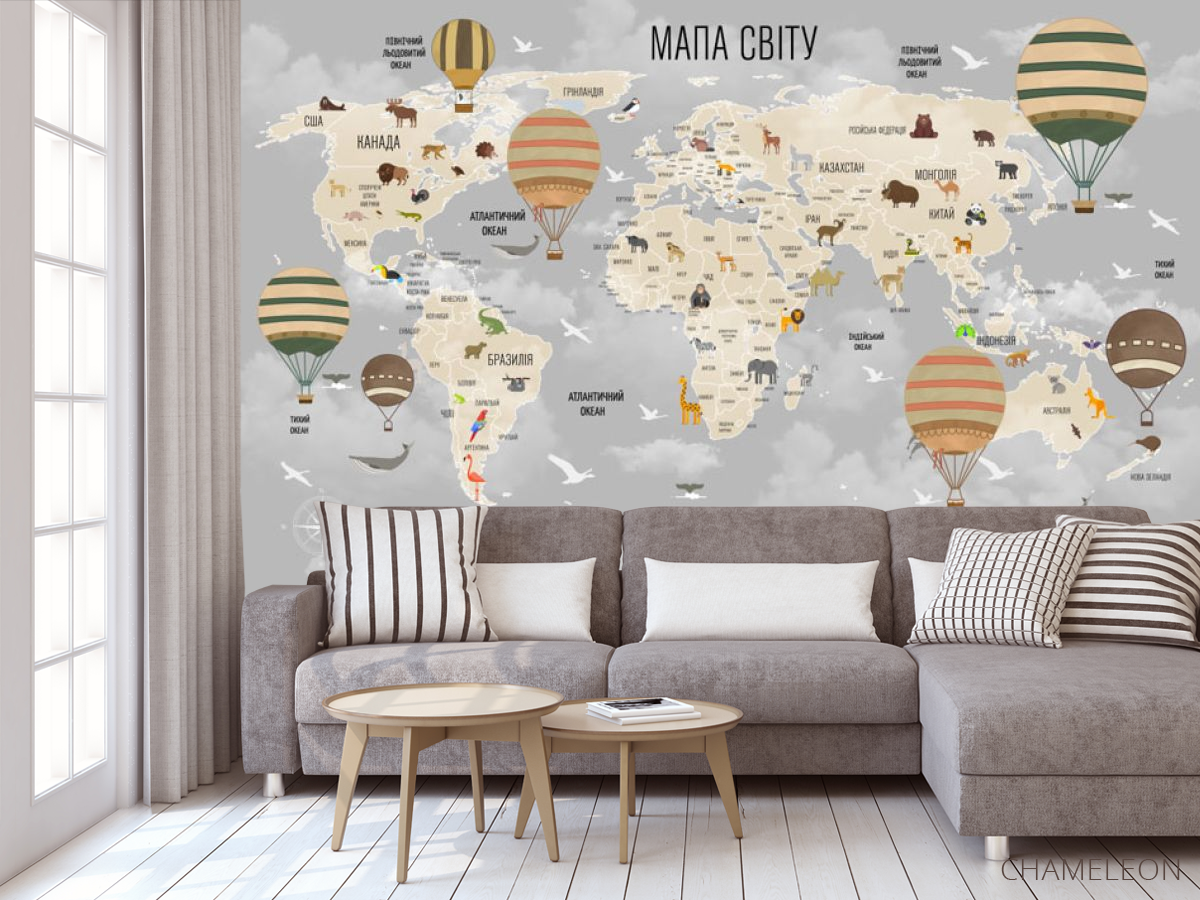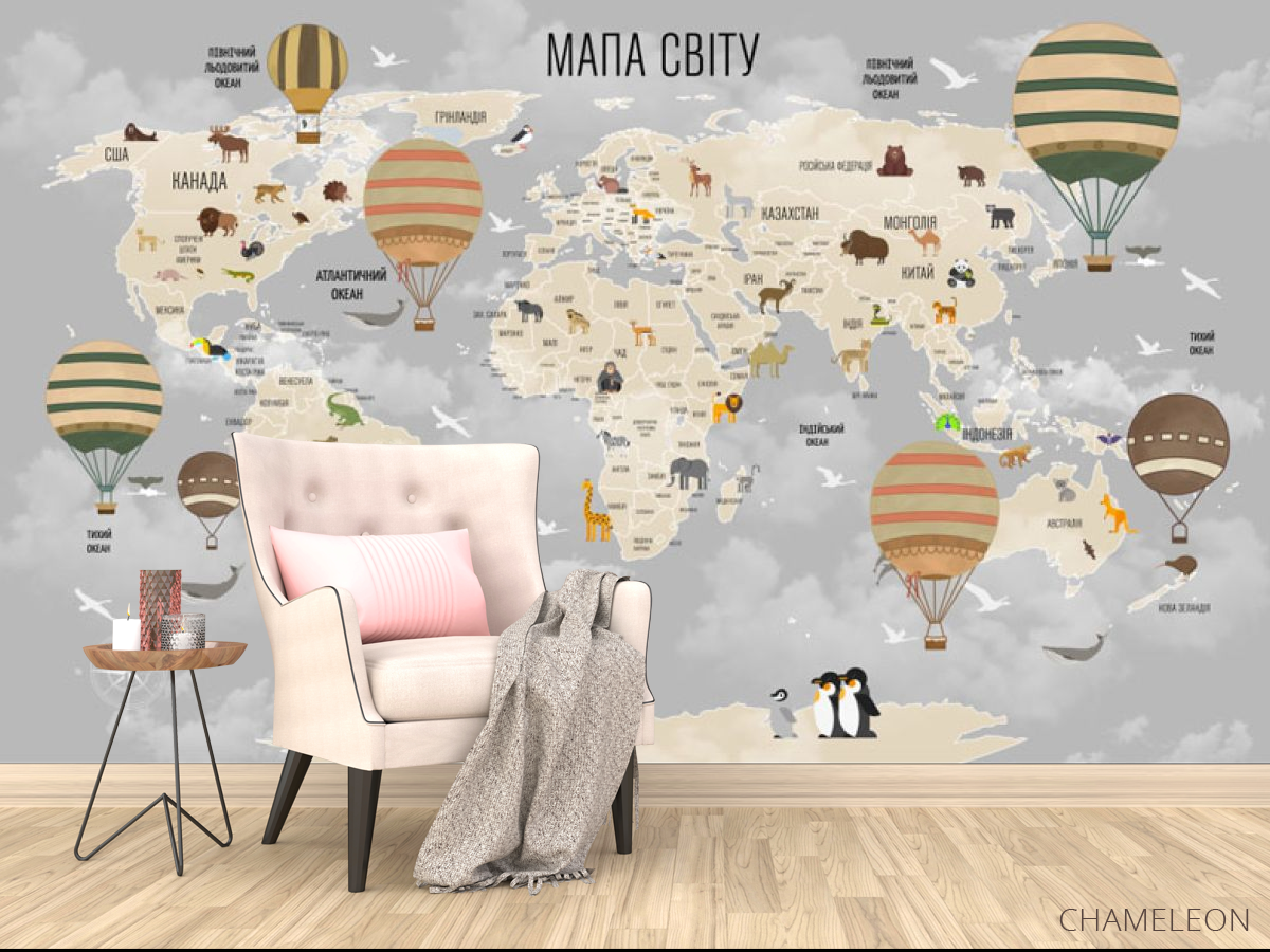 Фотообои Серая карта на украинском с воздушными шарами 22276
