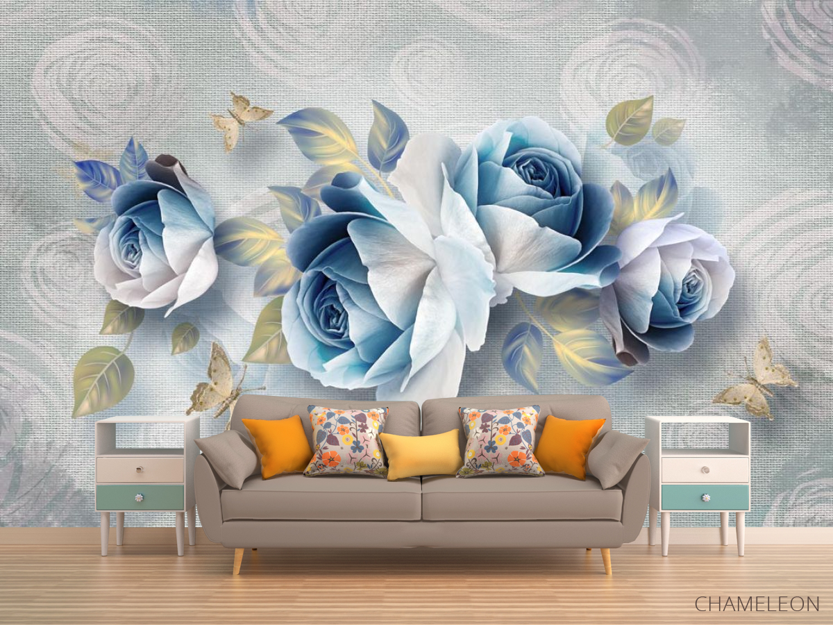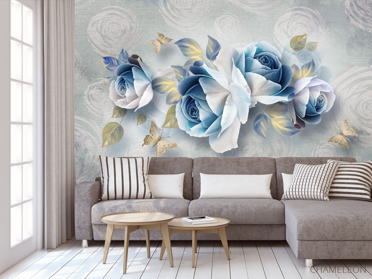 Фотообои Синие цветы 3д