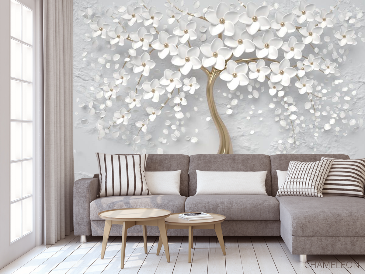 Фотообои 3д белое дерево 22356
