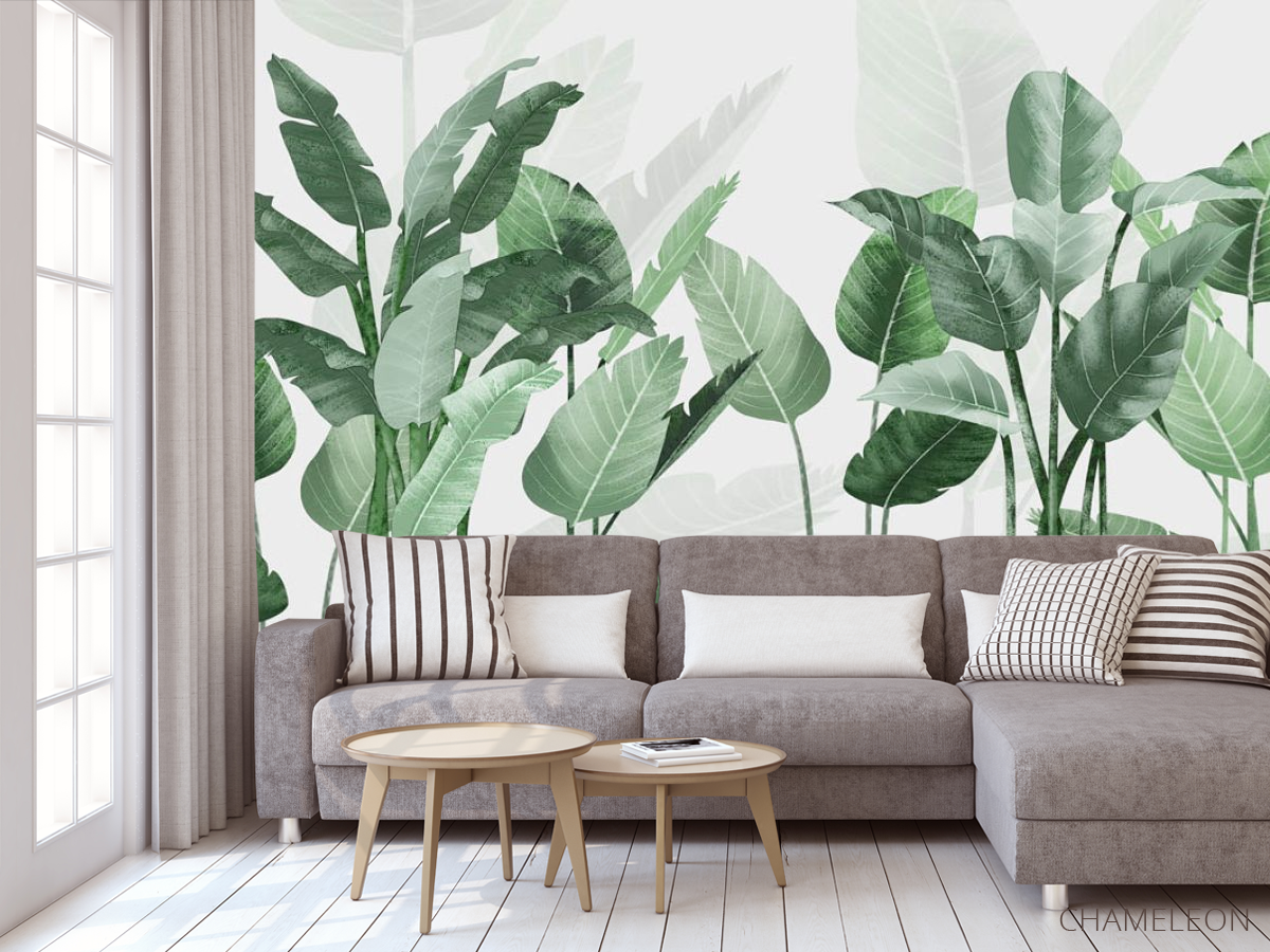 Современный интерьер в большинстве случаев исполнен из пастельных оттенков и порой хочется внести в них немного яркости. Фотообои тропические листья станут отличным решениям для тех, кто желает разбавить стиль комнаты и придать ему природной бодрости, красочности и создать атмосферу жарких стран. Такие обои чудесно впишутся в обстановку спальни, кухни или гостиной. Фотообои Тропические листья добавят в дом комфорта и уюта, а также будут радовать глаз на протяжении многих лет. Обои изготовлены из материалов высокого качества, не вызывают аллергию и не выгорают на солнце. Вы можете выбрать бумажную или флизилиновую основу, но вне зависимости от этого, клеить их абсолютно легко: достаточно лишь нанести клей на стену и прикрепить полотно.