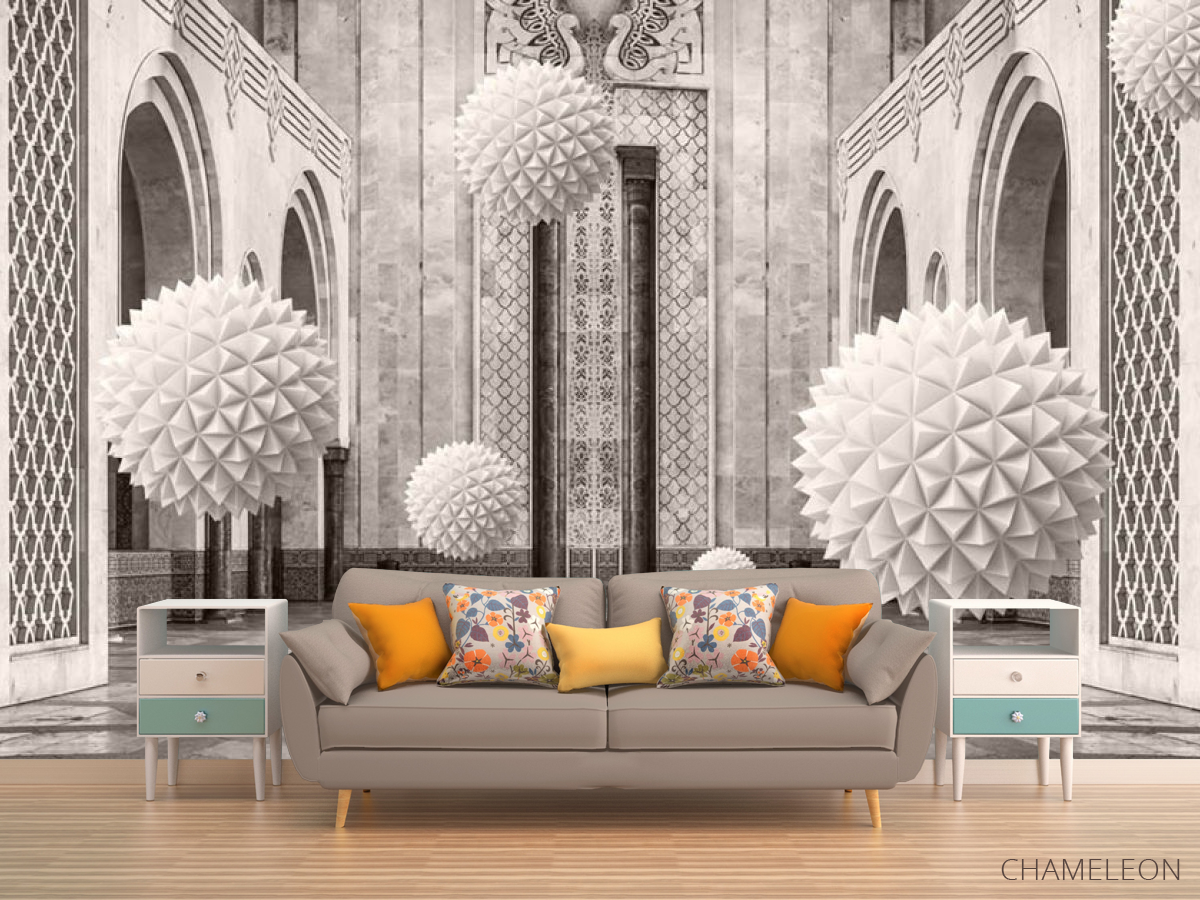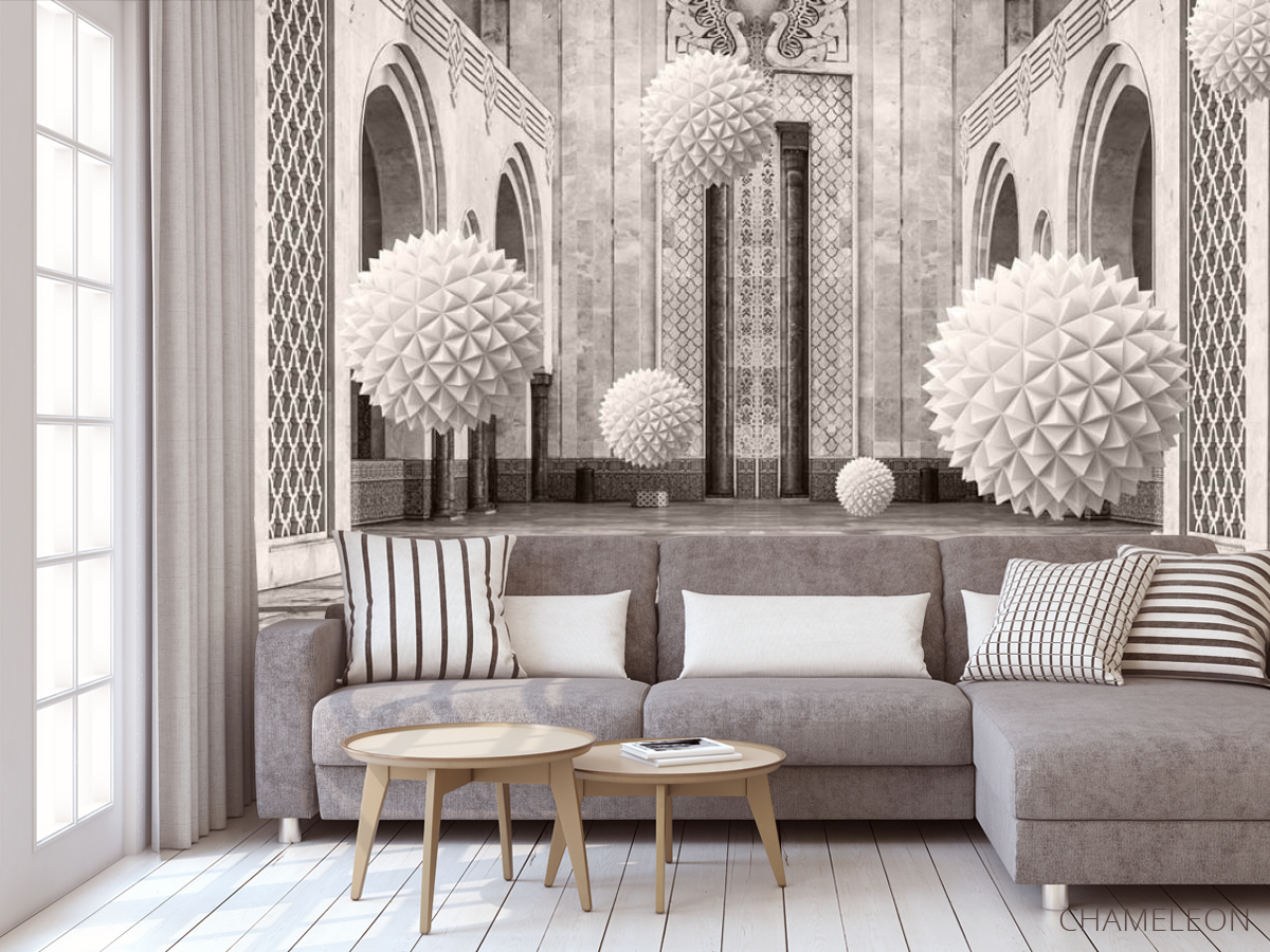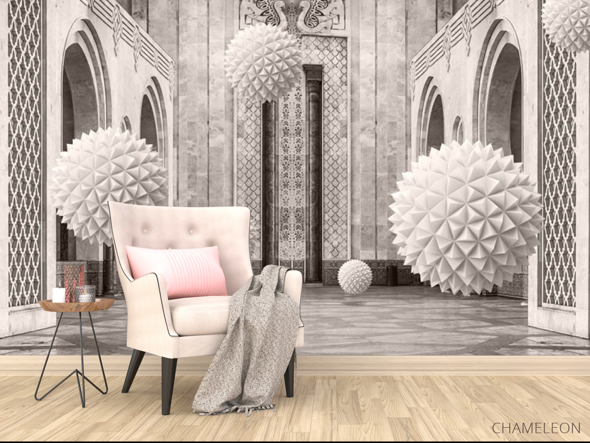 «3д фотообои 3д шары в арках», (арт. 22489) - купить в интернет-магазине Chameleon