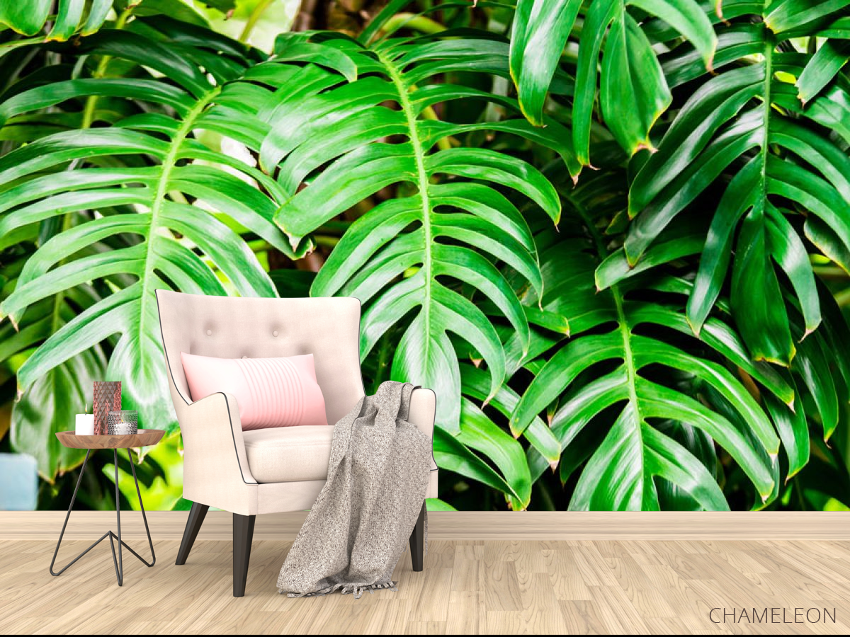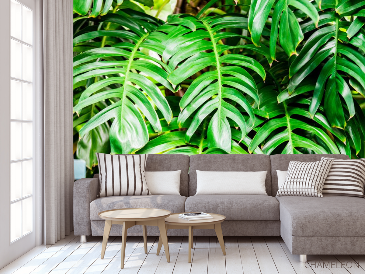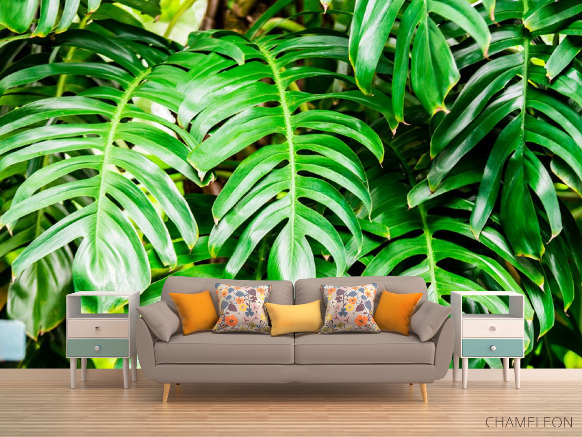 Современный интерьер в большинстве случаев исполнен из пастельных оттенков и порой хочется внести в них немного яркости. Фотообои тропические листья станут отличным решениям для тех, кто желает разбавить стиль комнаты и придать ему природной бодрости, красочности и создать атмосферу жарких стран. Такие обои чудесно впишутся в обстановку спальни, кухни или гостиной. Фотообои Тропические листья добавят в дом комфорта и уюта, а также будут радовать глаз на протяжении многих лет. Обои изготовлены из материалов высокого качества, не вызывают аллергию и не выгорают на солнце. Вы можете выбрать бумажную или флизилиновую основу, но вне зависимости от этого, клеить их абсолютно легко: достаточно лишь нанести клей на стену и прикрепить полотно.