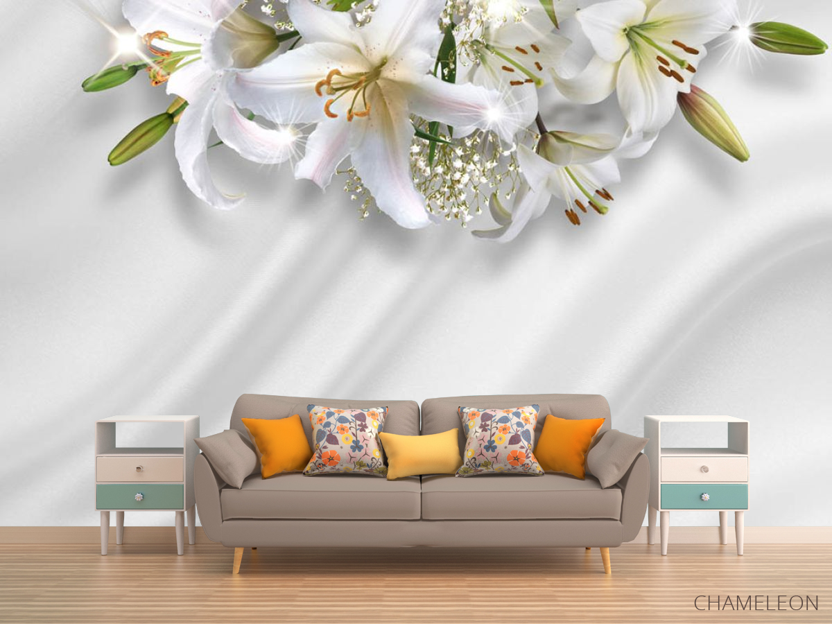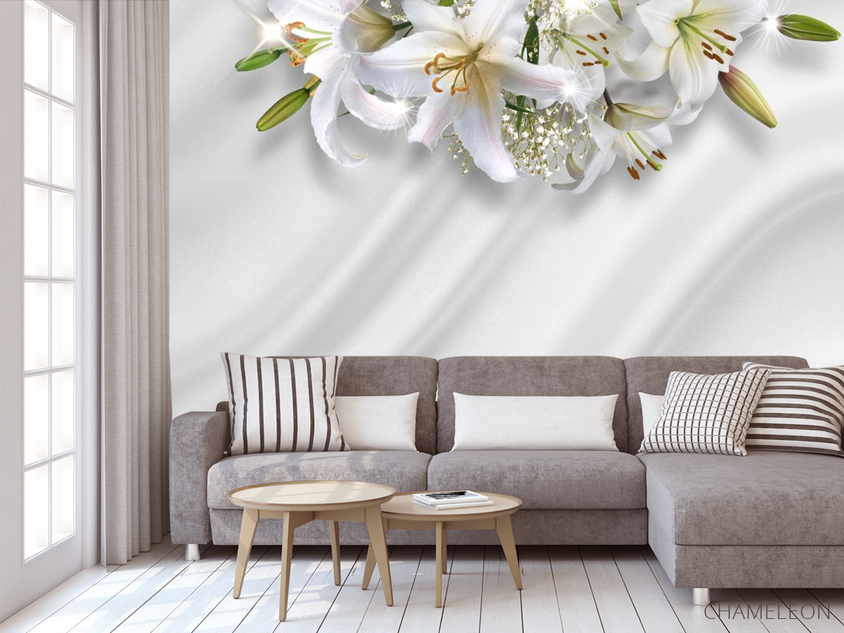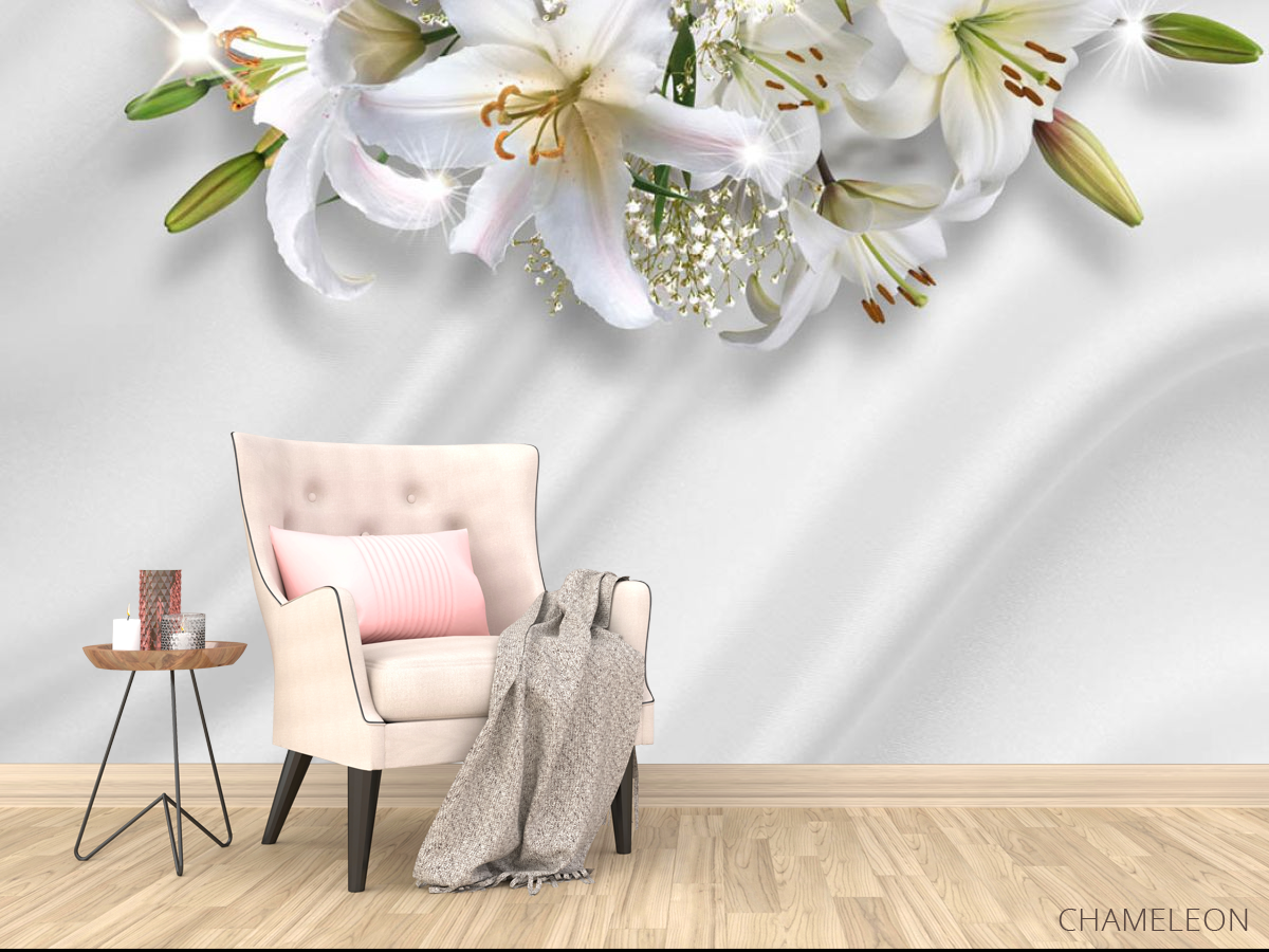 Фотообои Лилии на фоне атласа