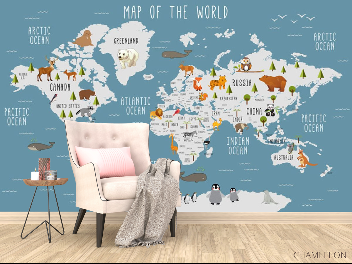 Фотообои Карта в бирюзовом оттенке для комнаты мальчика на английском 23012