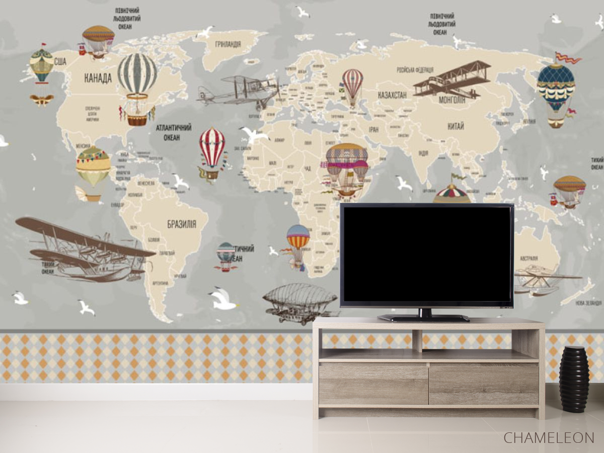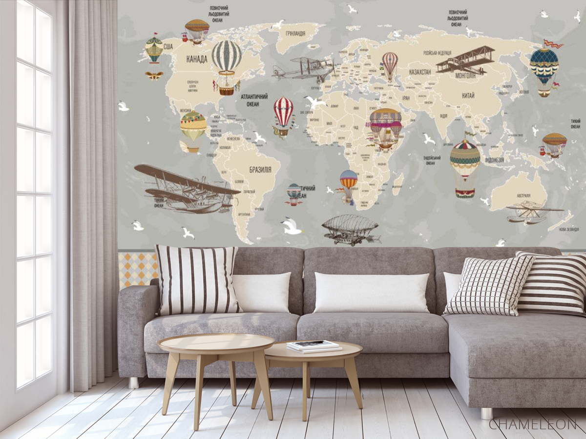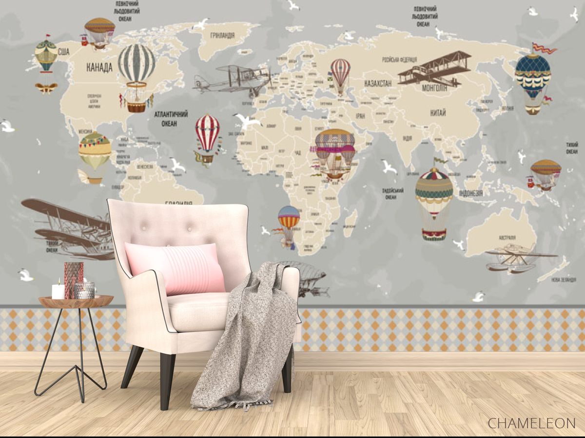 Фотообои Карта детская с самолетами и слоями по русски 23024