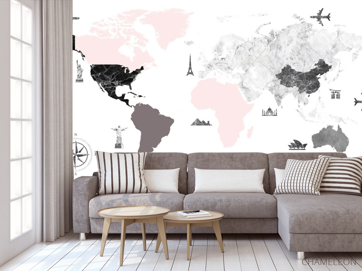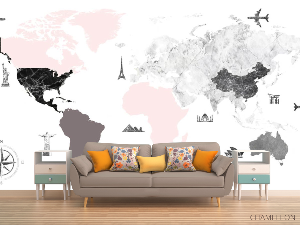 Фотообои карта мира являются очень хорошим выбором как для дома (в гостиную, рабочий кабинет или кухню), так и для других зданий (в школу, ресторан или салон красоты). Они выглядят роскошно, имеют стильный дизайн и отлично подходят под любое оформление комнаты. Современные фотообои на стену производятся из надежного материала, который не портится и не царапается. Изображение - это полностью безопасная краска, которая не вызывает аллергии, а также остается красивым в течение многих лет. Вы можете уверенно использовать обои, которые украсят любое помещение. Купить стильные и оригинальные фотообои с картой мира можно в интернет-магазине Chameleons.