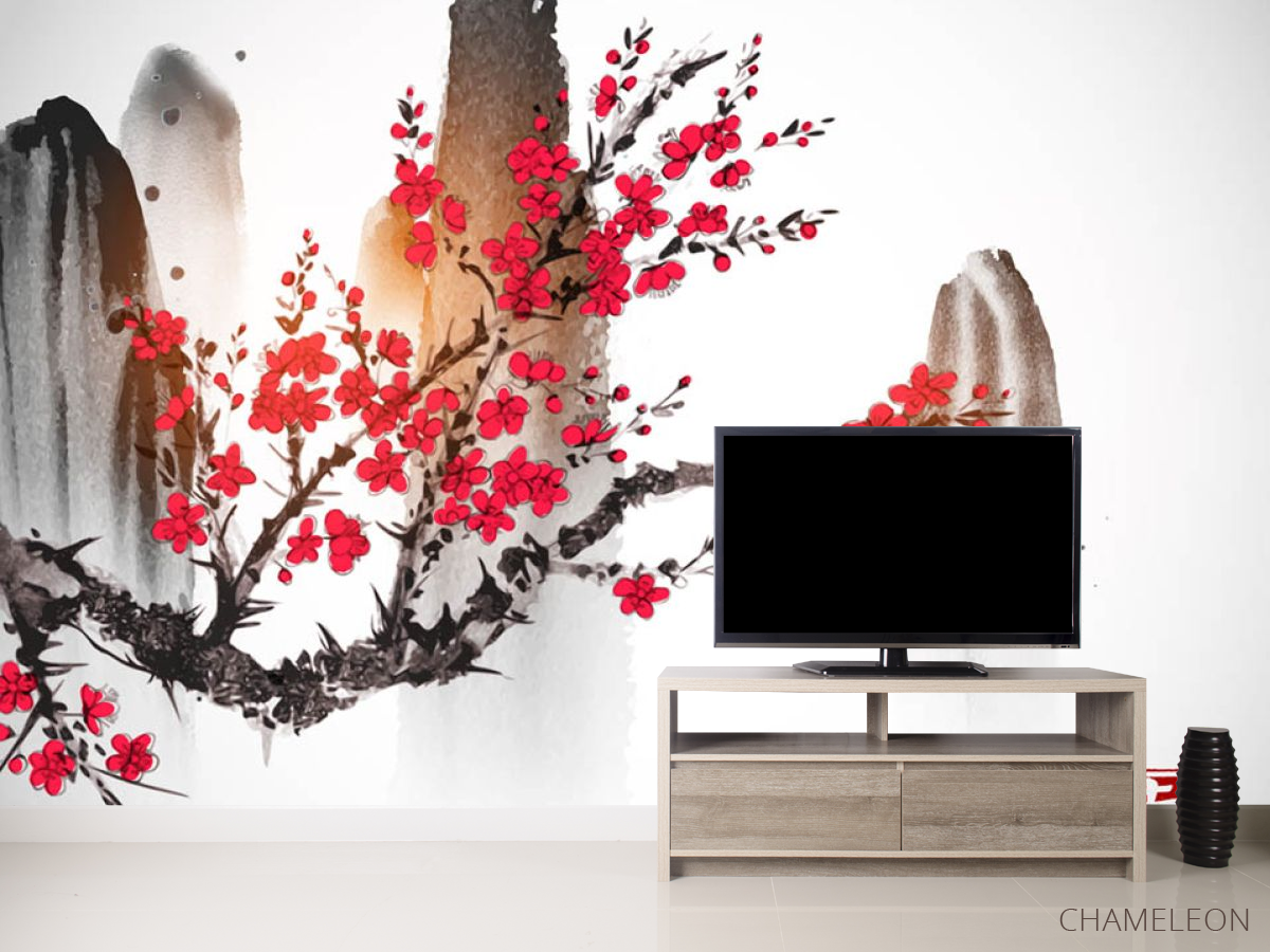 Фотообои Рисованная сакура в японском стиле