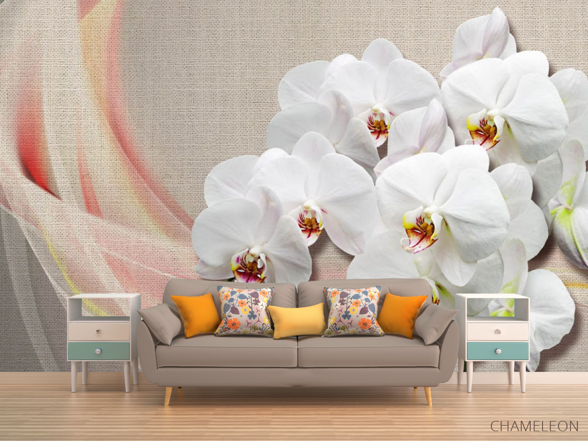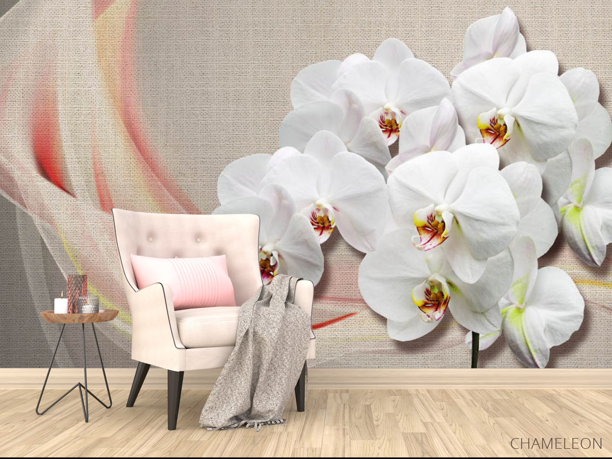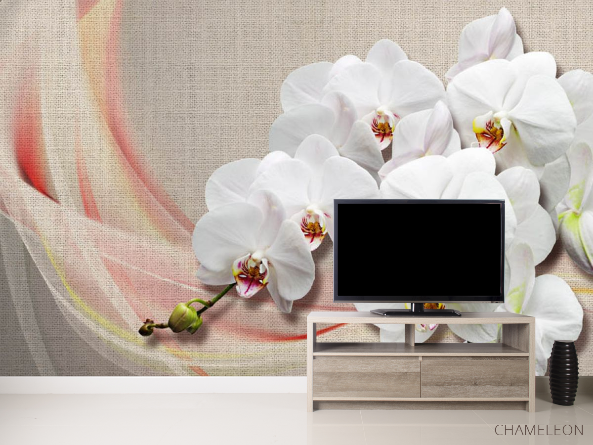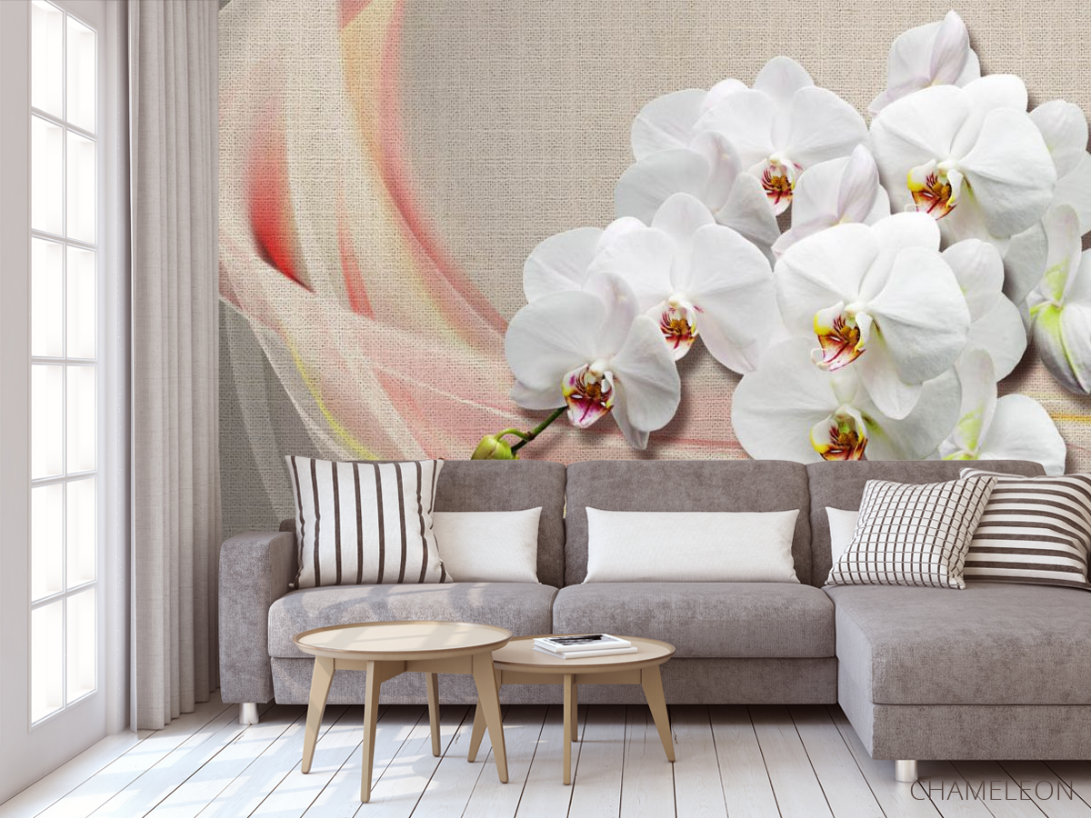 Фотообои Орхидеи на фоне ткани