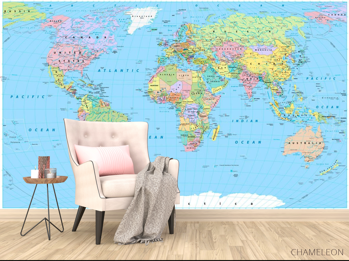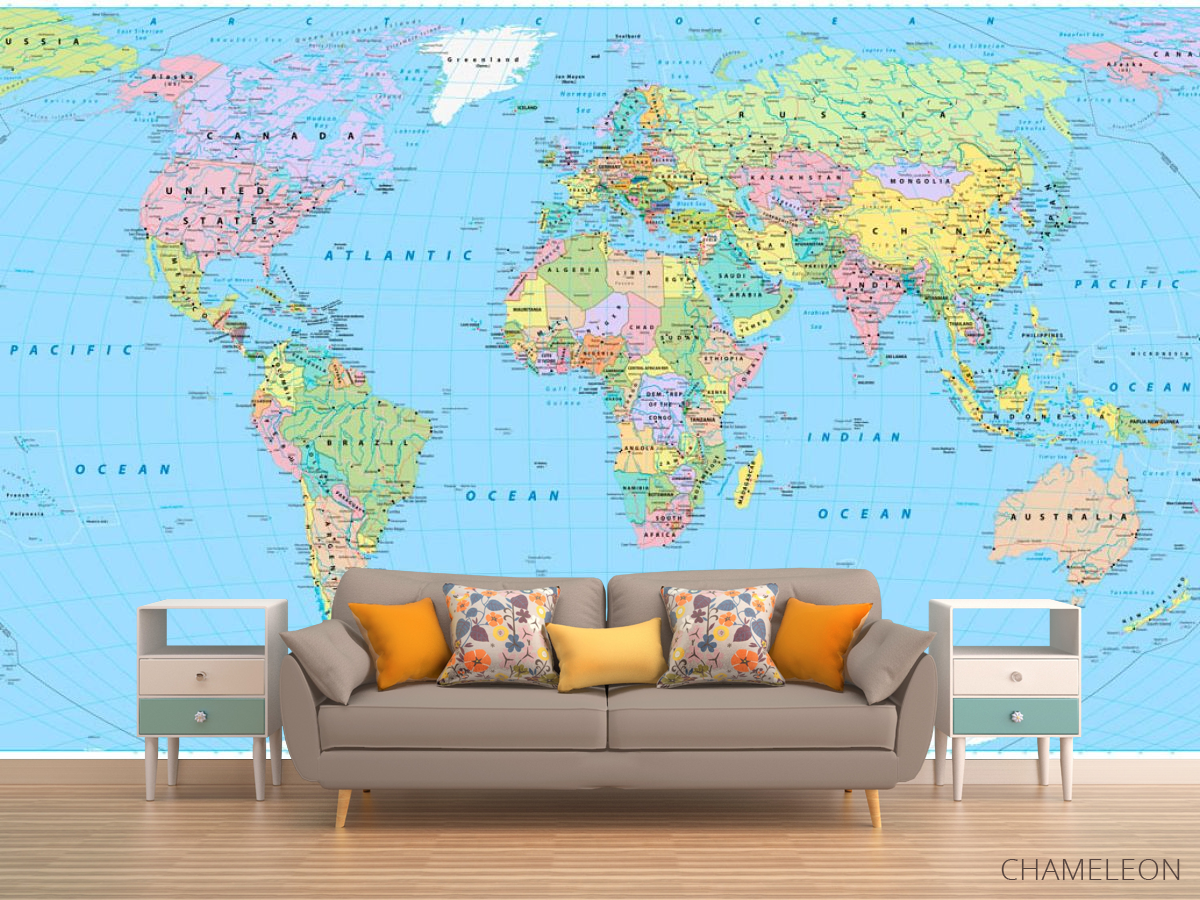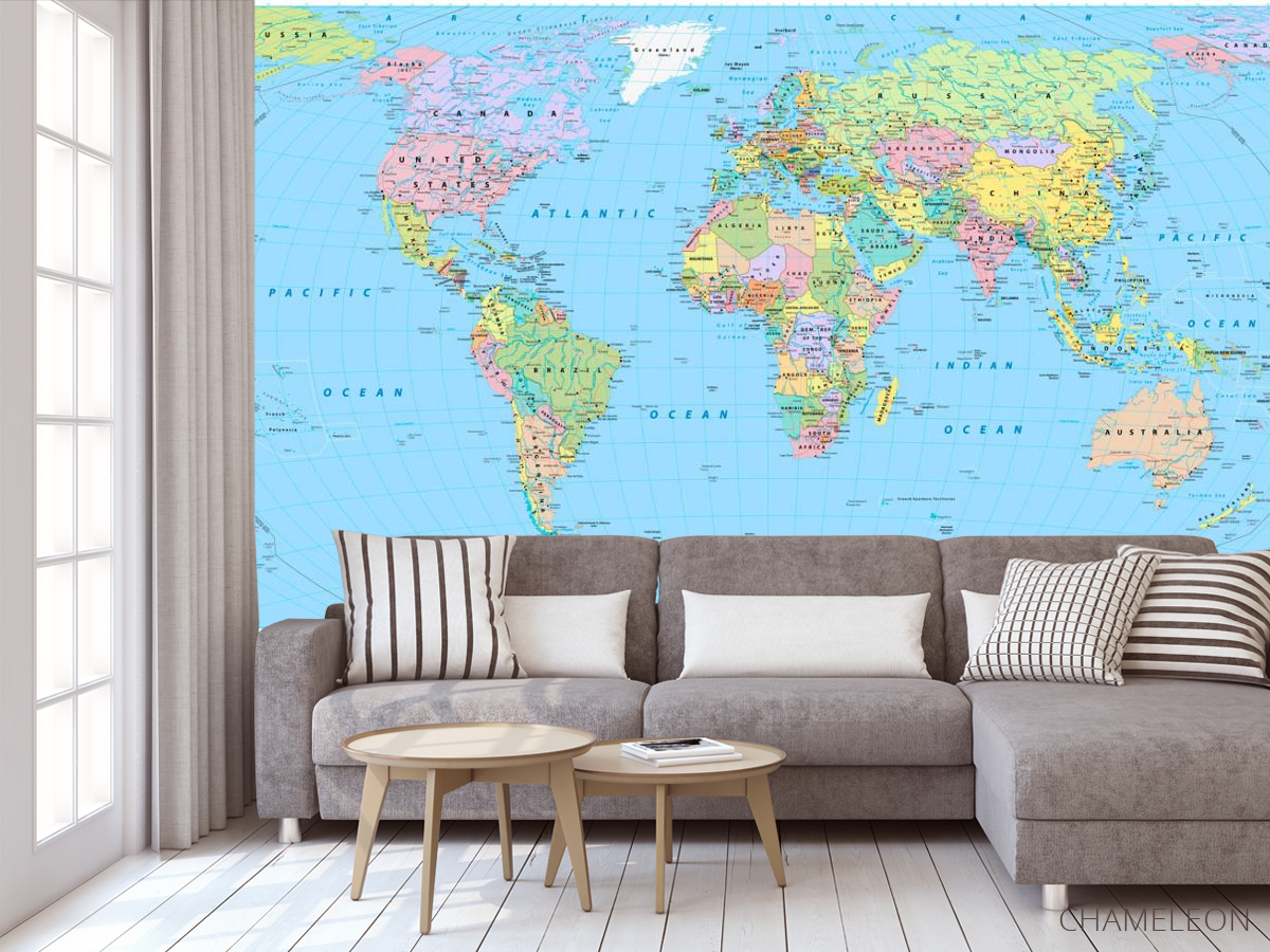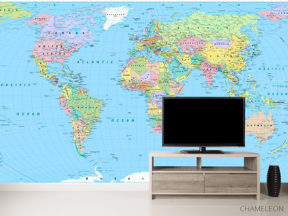 Фотообои карта мира являются очень хорошим выбором как для дома (в гостиную, рабочий кабинет или кухню), так и для других зданий (в школу, ресторан или салон красоты). Они выглядят роскошно, имеют стильный дизайн и отлично подходят под любое оформление комнаты. Современные фотообои на стену производятся из надежного материала, который не портится и не царапается. Изображение - это полностью безопасная краска, которая не вызывает аллергии, а также остается красивым в течение многих лет. Вы можете уверенно использовать обои, которые украсят любое помещение. Купить стильные и оригинальные фотообои с картой мира можно в интернет-магазине Chameleons.