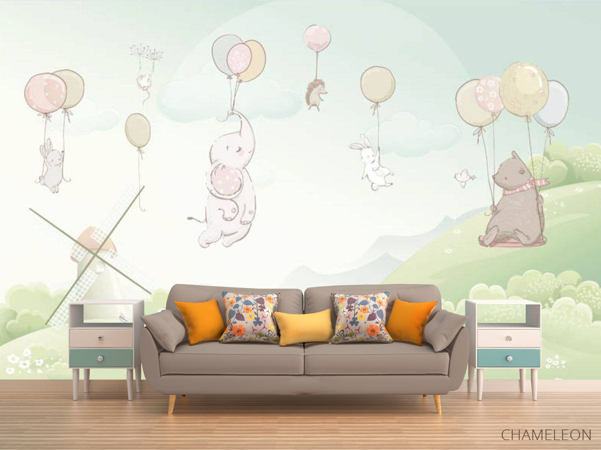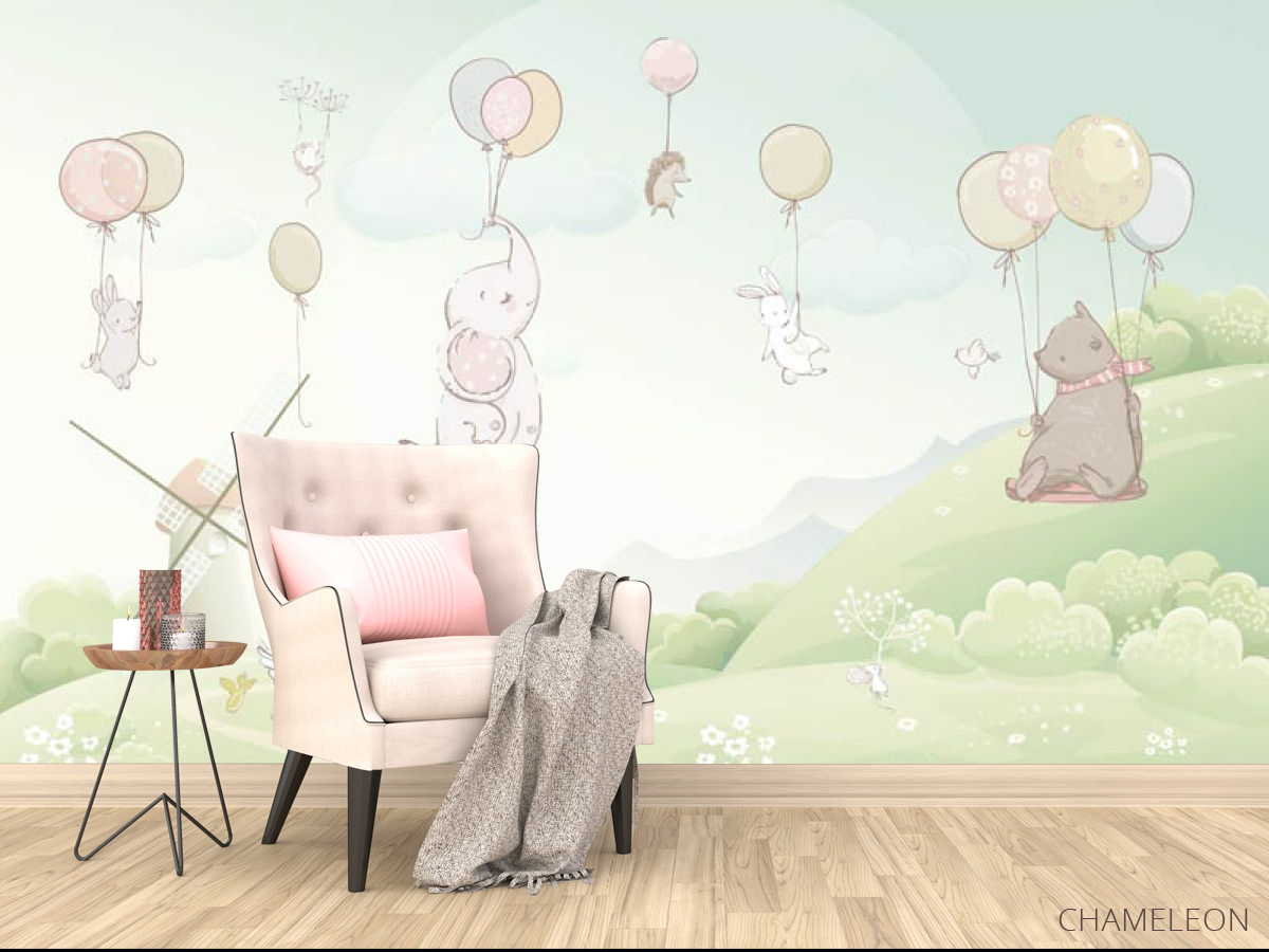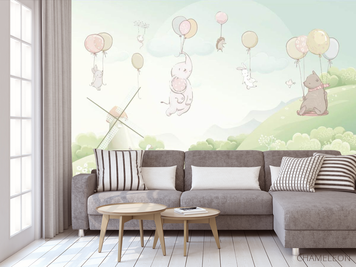 «Фотообои животные на воздушных шариках», (арт. 23760) - купить в интернет-магазине Chameleon