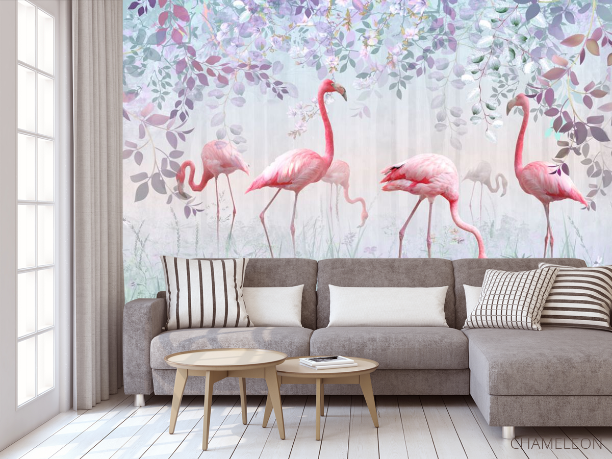 Изображения дикой тропической природы и ее обитателей привлекают и давно стали привычным элементом декора в современных интерьерах. Фотообои Фламинго – это яркий и оригинальный акцент, который достойный внимания. Эти чудесные птицы завораживают своей грацией и вызывают улыбку. Такой рисунок придется по душе и ребенку, и взрослому, а значит фотообои Фламинго отлично впишутся в интерьер любой комнаты: детской, спальни, гостиной или кухни. Также такой рисунок будет круто смотреться в салонах красоты, ведь большинство женщин тают от этих розовых милых созданий. Фотообои Фламинго изготовлены из высококачественных материалов, которые отличаются стойкостью и не выгорают на солнце. Вы также можете выбрать их основу бумажную или флизилиновую.