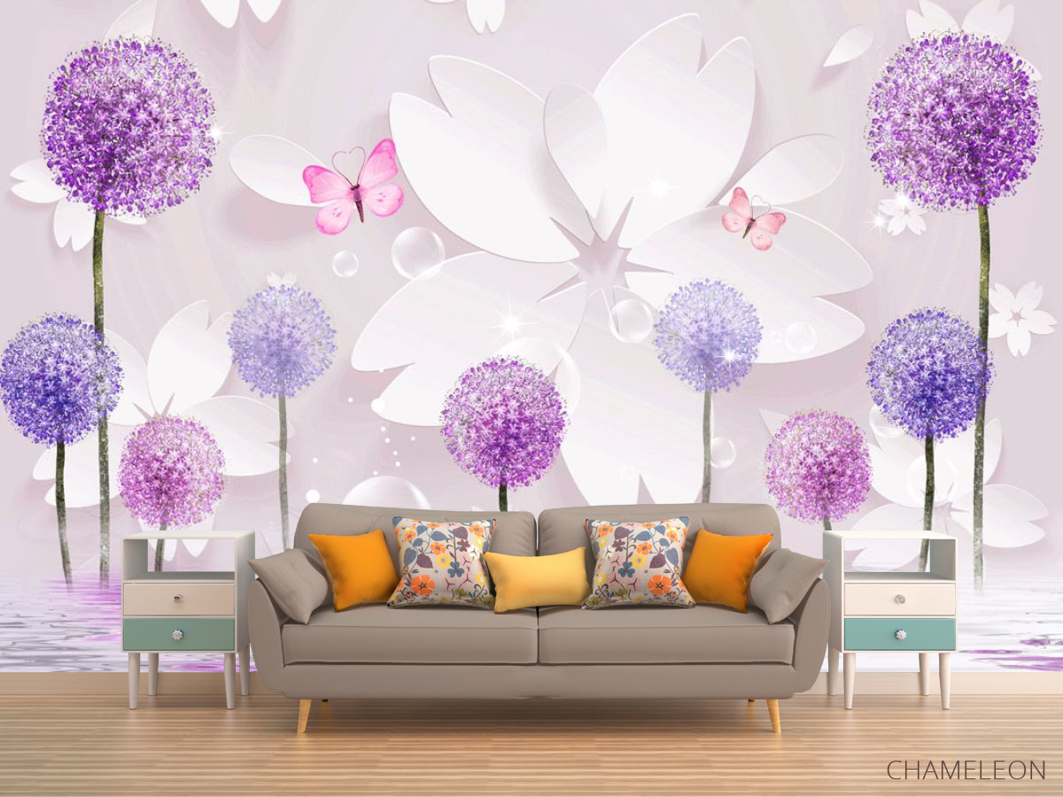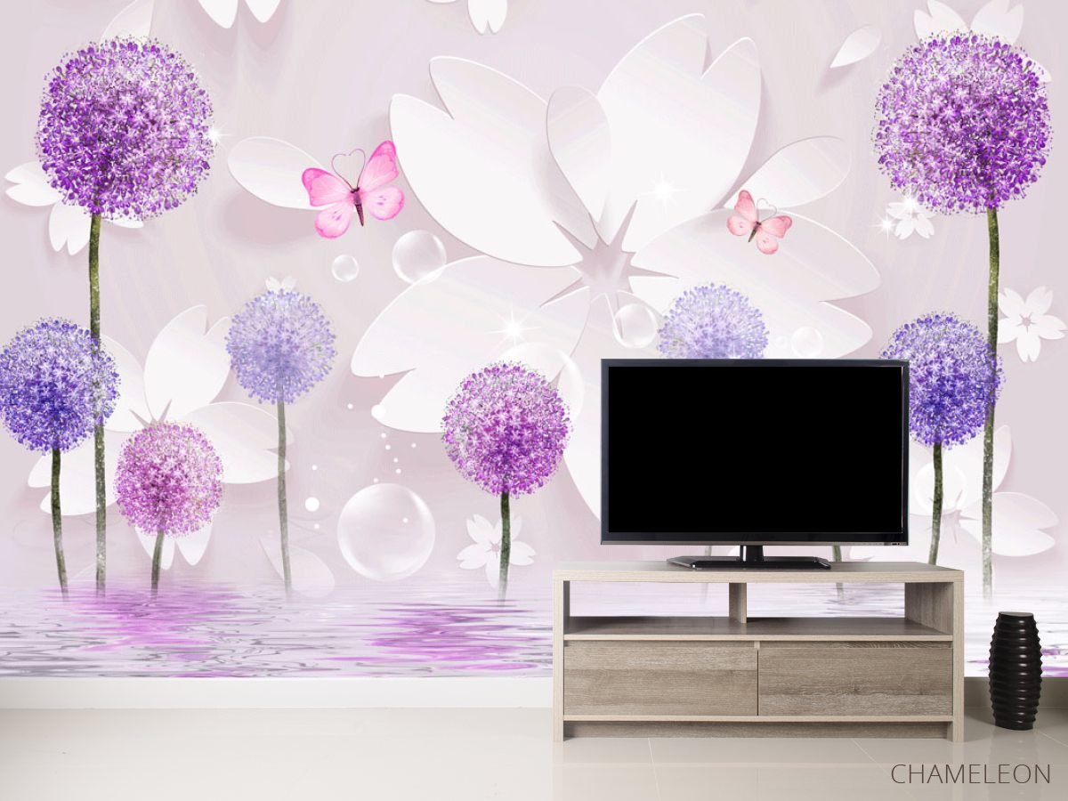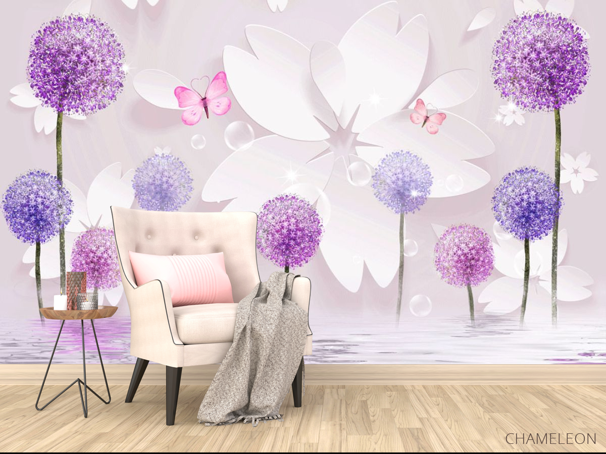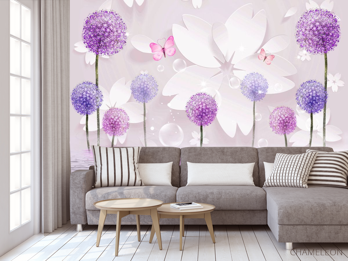 «Фотообои Фиолетовые 3д одуванчики», (арт. 23946) - купить в интернет-магазине Chameleon