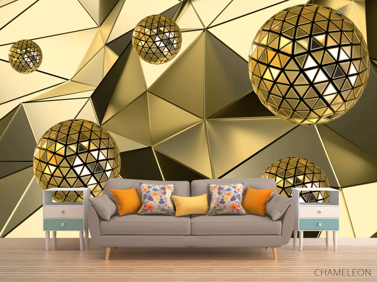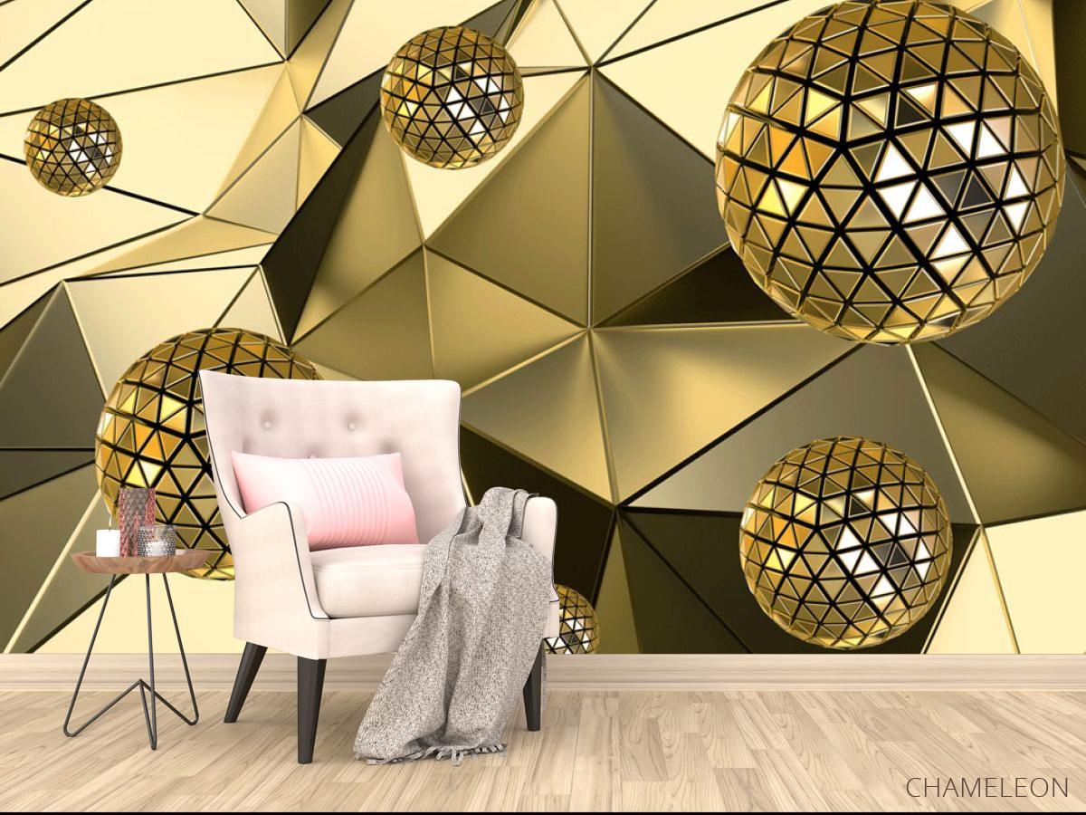 «Фотообои Золотые сферы 3д», (арт. 23985) - купить в интернет-магазине Chameleon