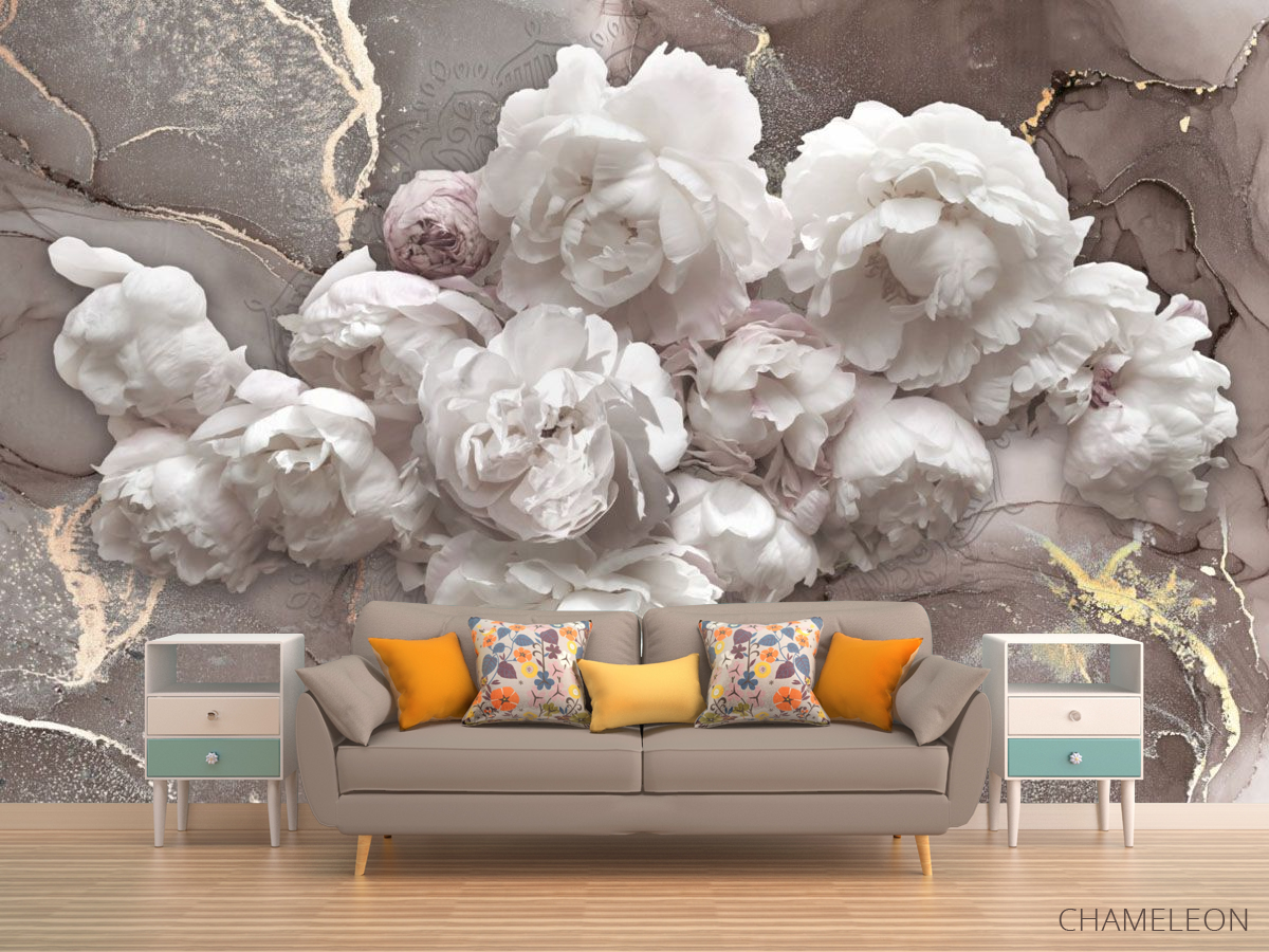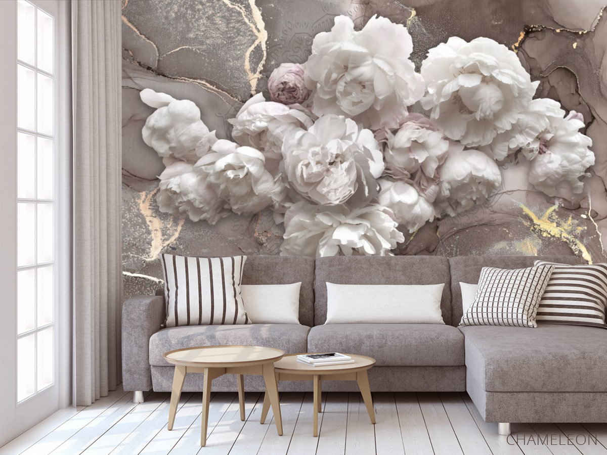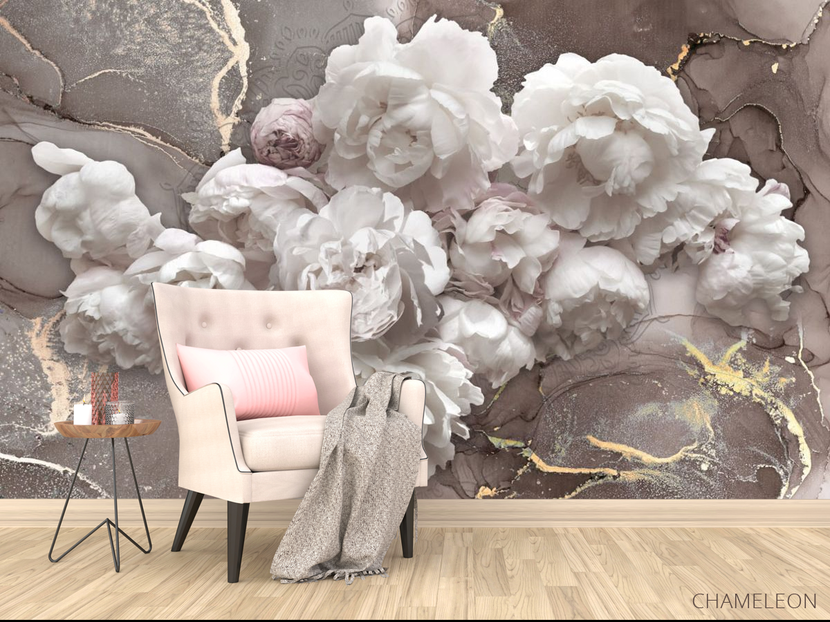 «Фотообои пионы с золотом», (арт. 24012g) - купить в интернет-магазине Chameleon