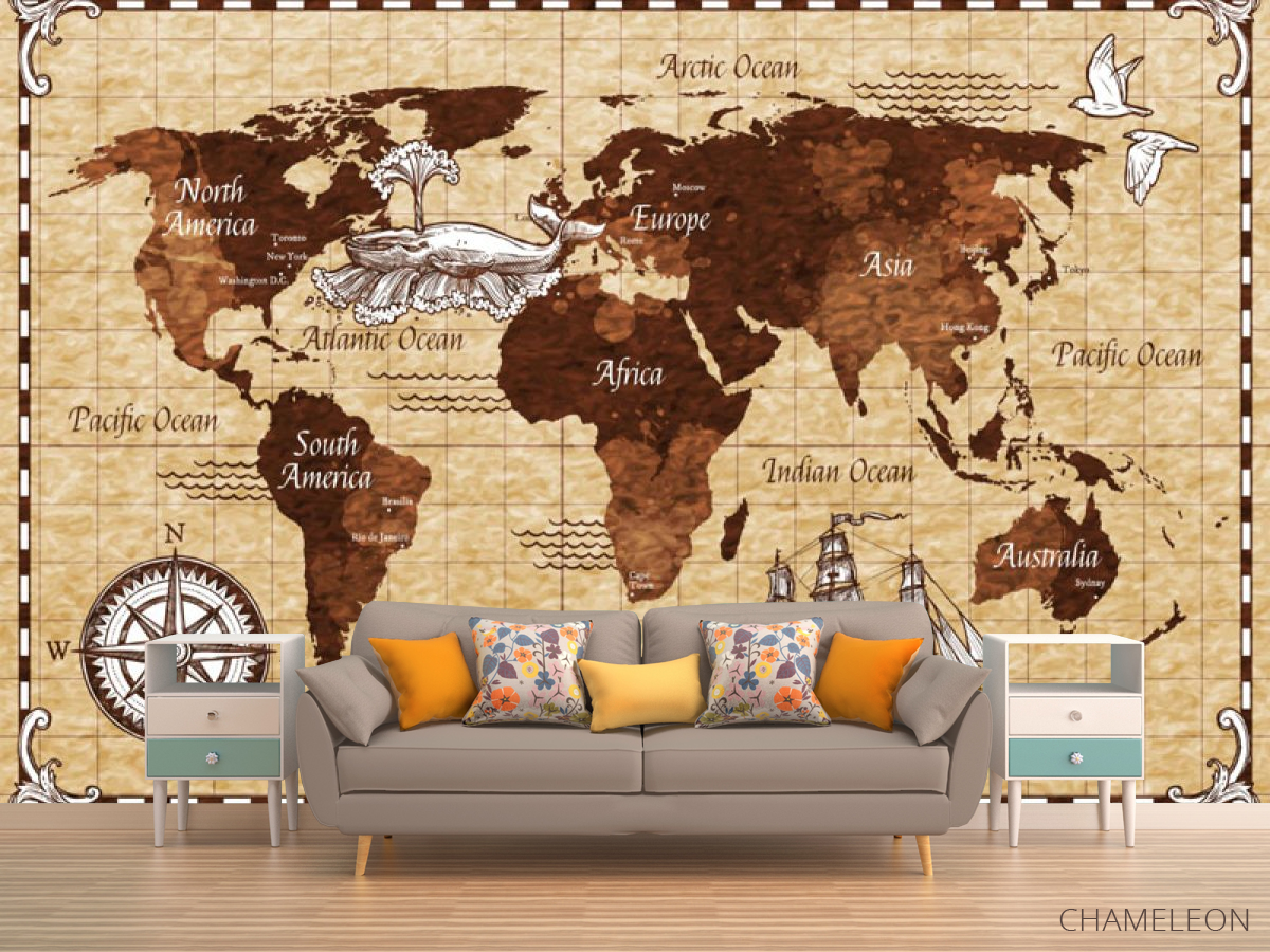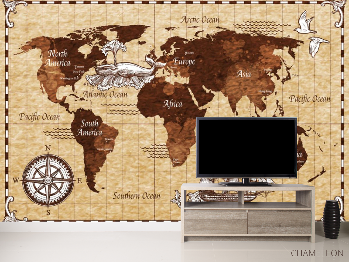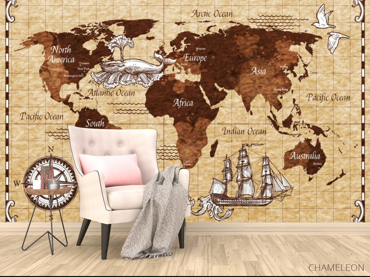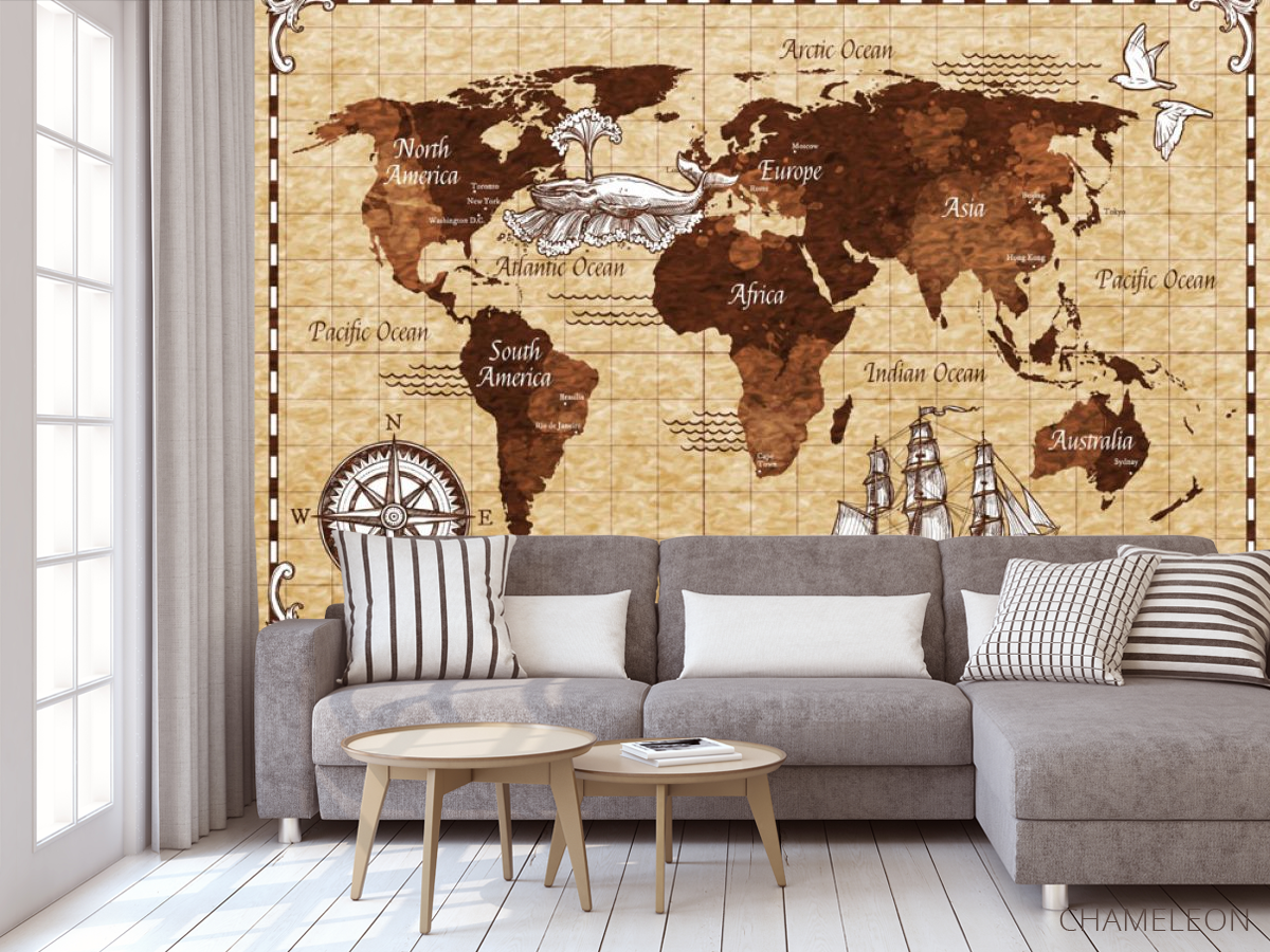Фотообои Винтажная карта детская коричневая 24125