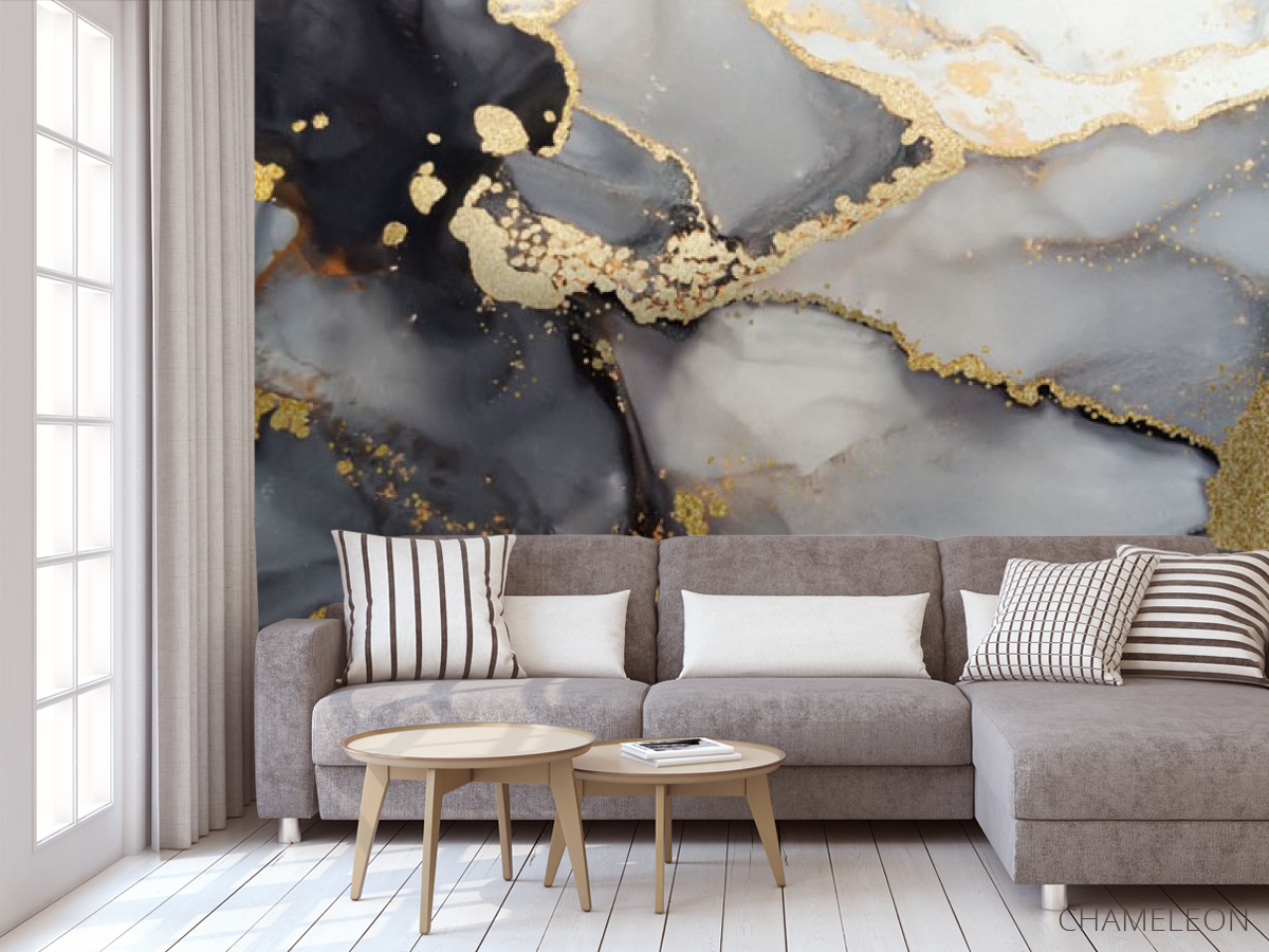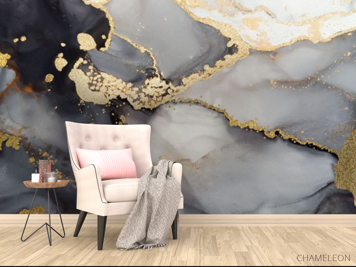 «Фотообои чб флюид с золотом», (арт. 24617g) - купить в интернет-магазине Chameleon