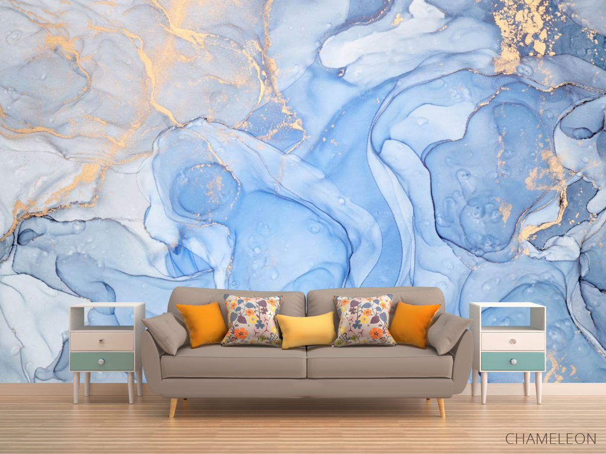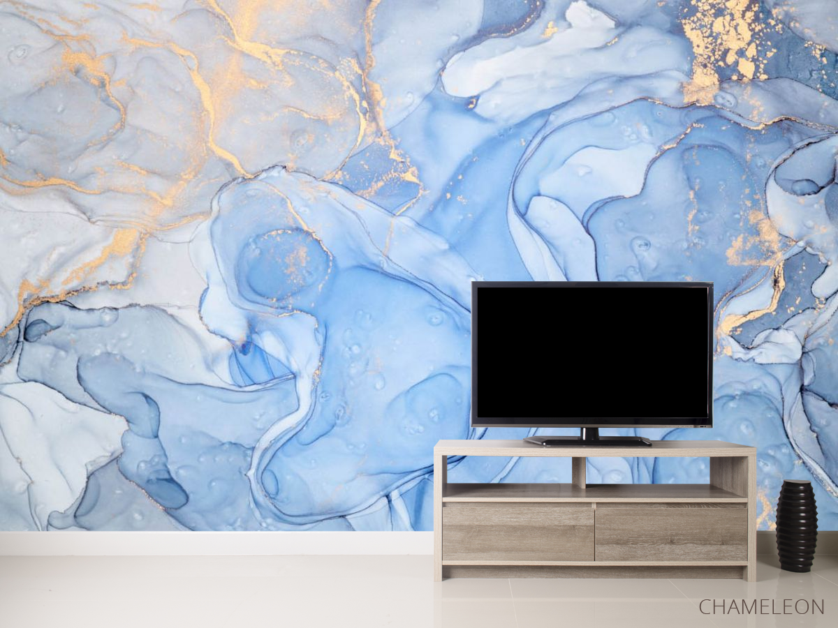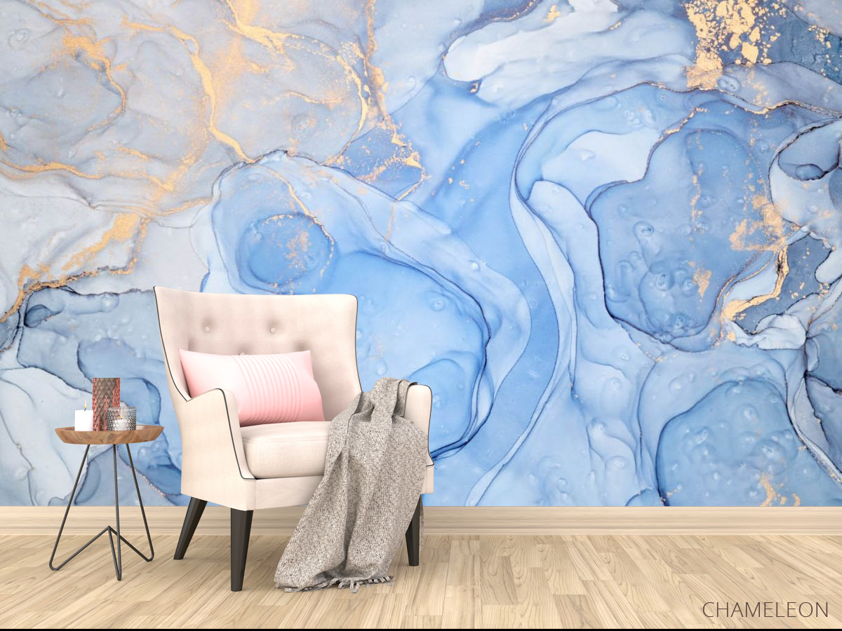 «Фотообои Голубой флюид с золотом», (арт. 24692) - купить в интернет-магазине Chameleon