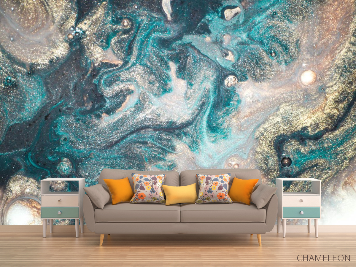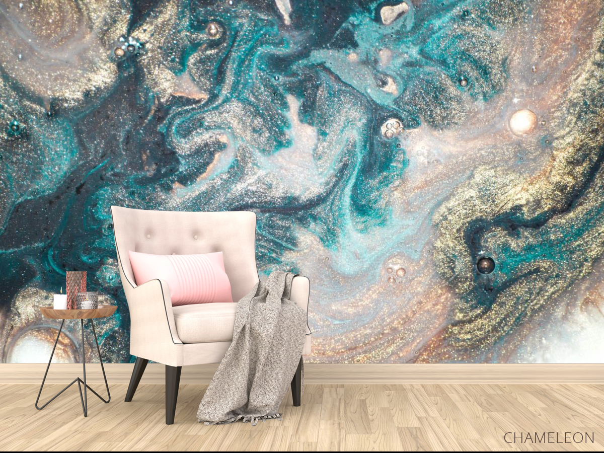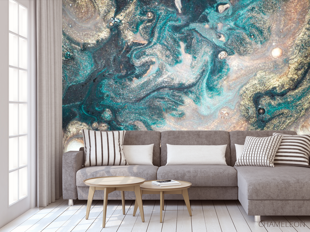 «Фотообои Золотой флюид с бирюзой», (арт. 25023) - купить в интернет-магазине Chameleon