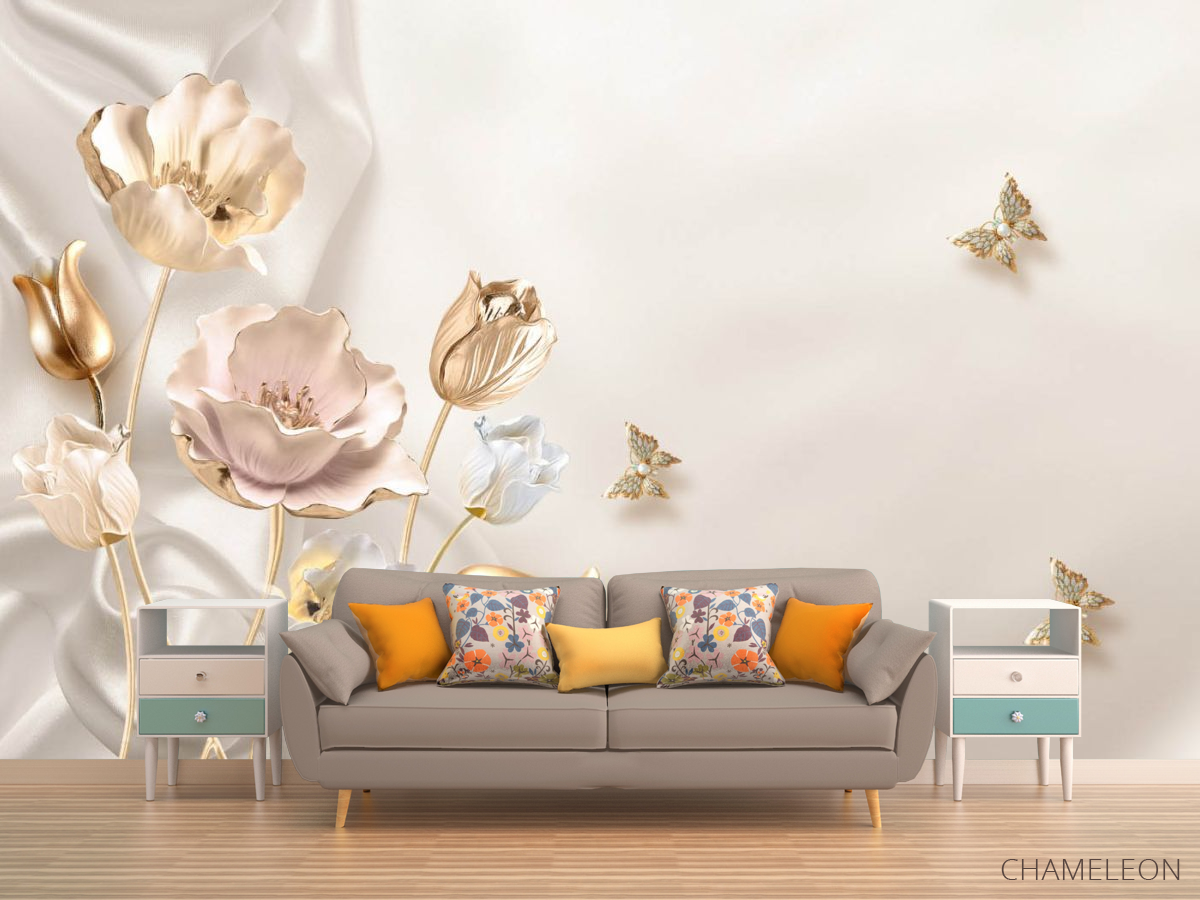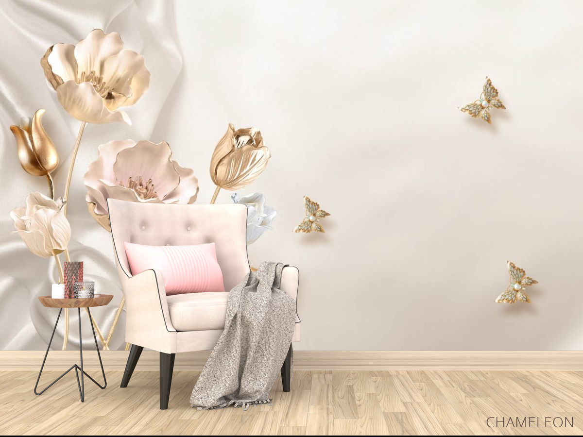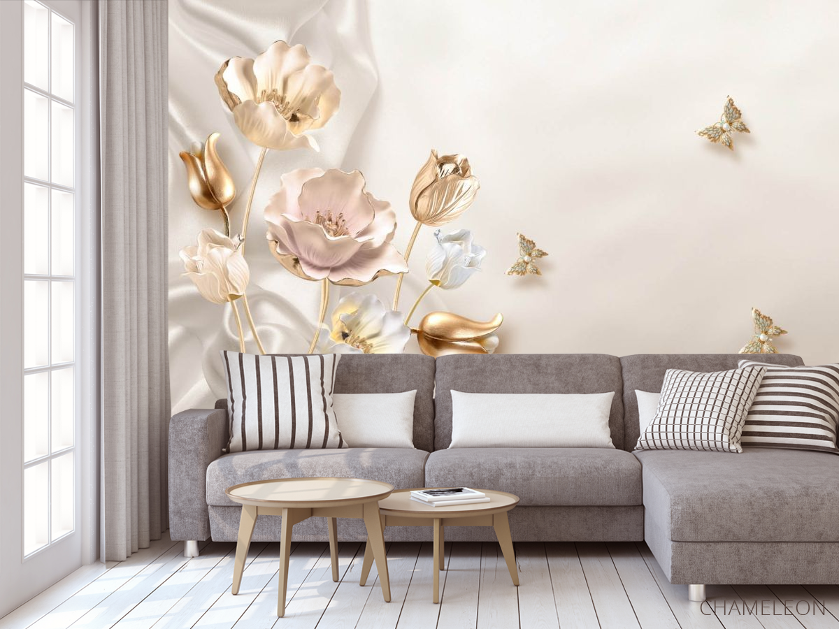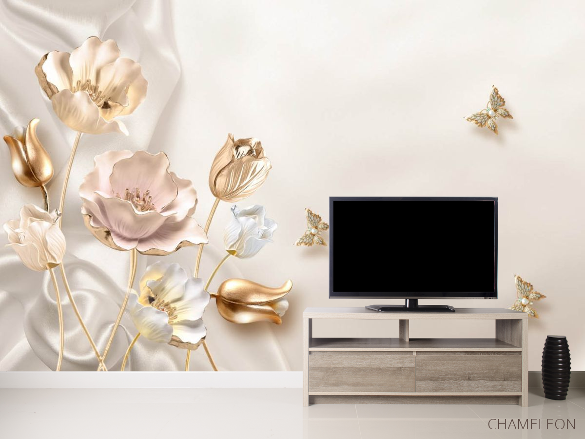 «Фотообои Золотые 3д цветы», (арт. 25030) - купить в интернет-магазине Chameleon